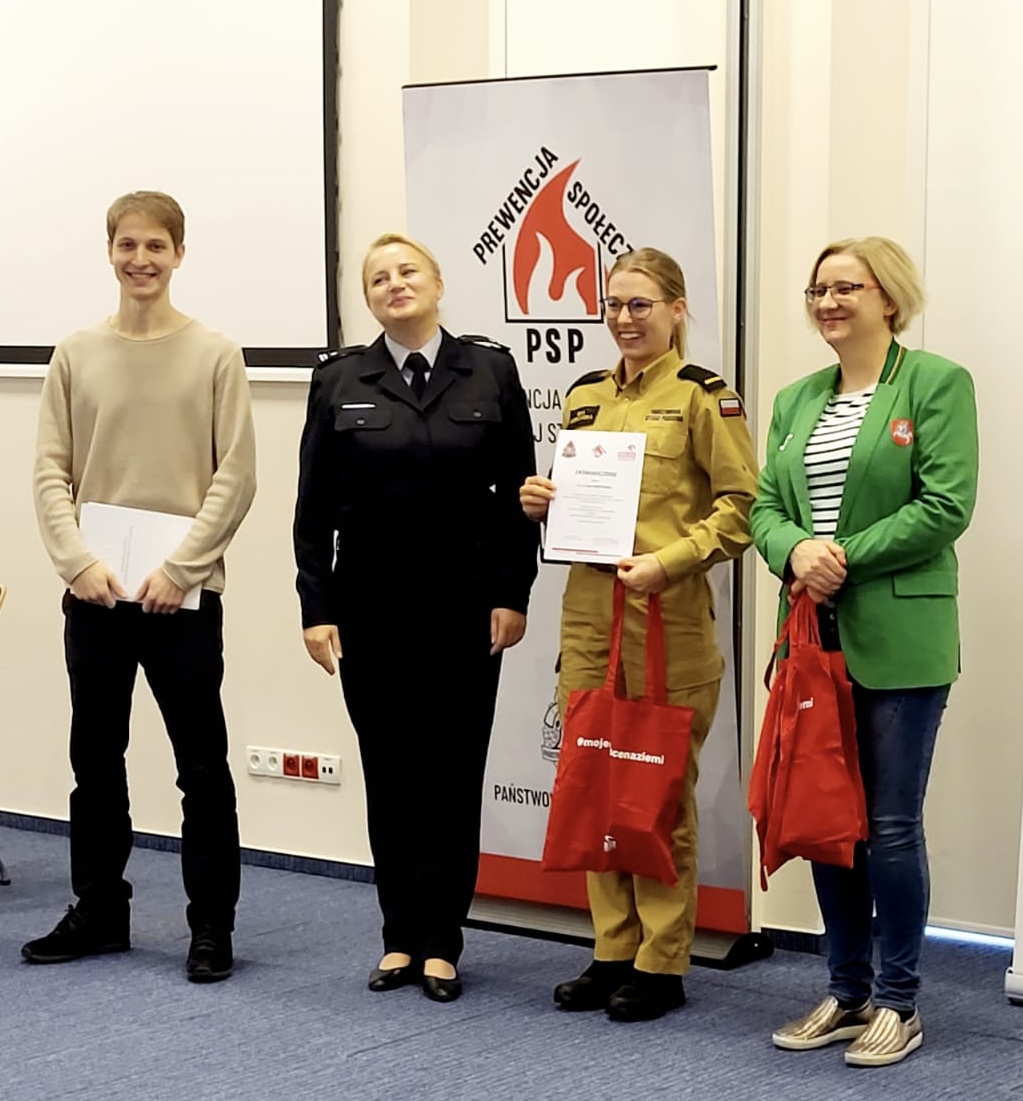 Na zakończenie, podziękowania funkcjonariuszom za i ich wkład w edukowanie społeczeństwa wyrazili: st. bryg. Marek Piekutowski – Dyrektor Biura Komendanta Głównego Państwowej Straży Pożarnej oraz pani Katarzyna Różycka - Prezes Fundacji Orlen.