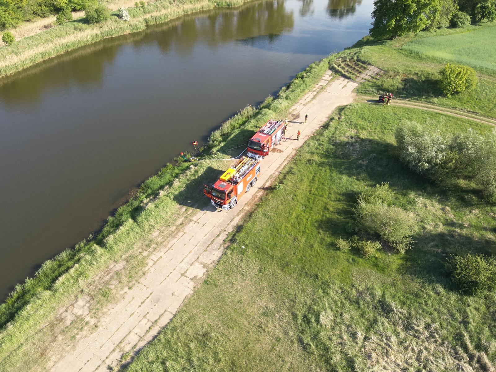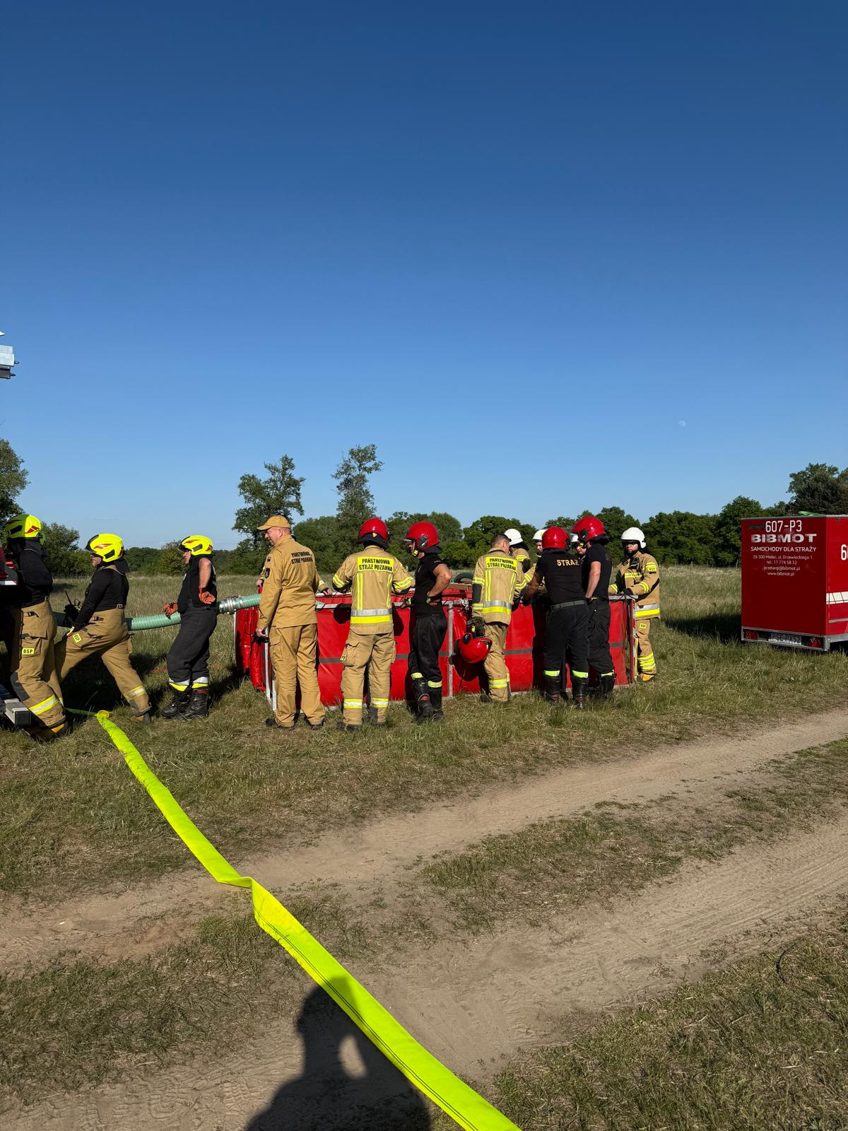 - zorganizować zaopatrzenie wodne zapewniające ciągłość podawania środka gaśniczego na bazie zbiorników wodnych; odległość od stanowiska wodnego do najdalszego stanowiska gaśniczego wynosiła około 800 metrów,