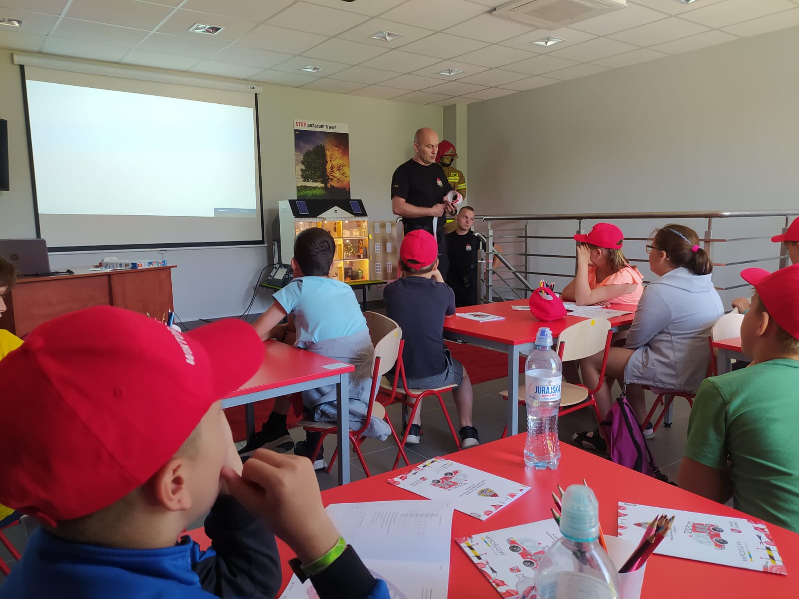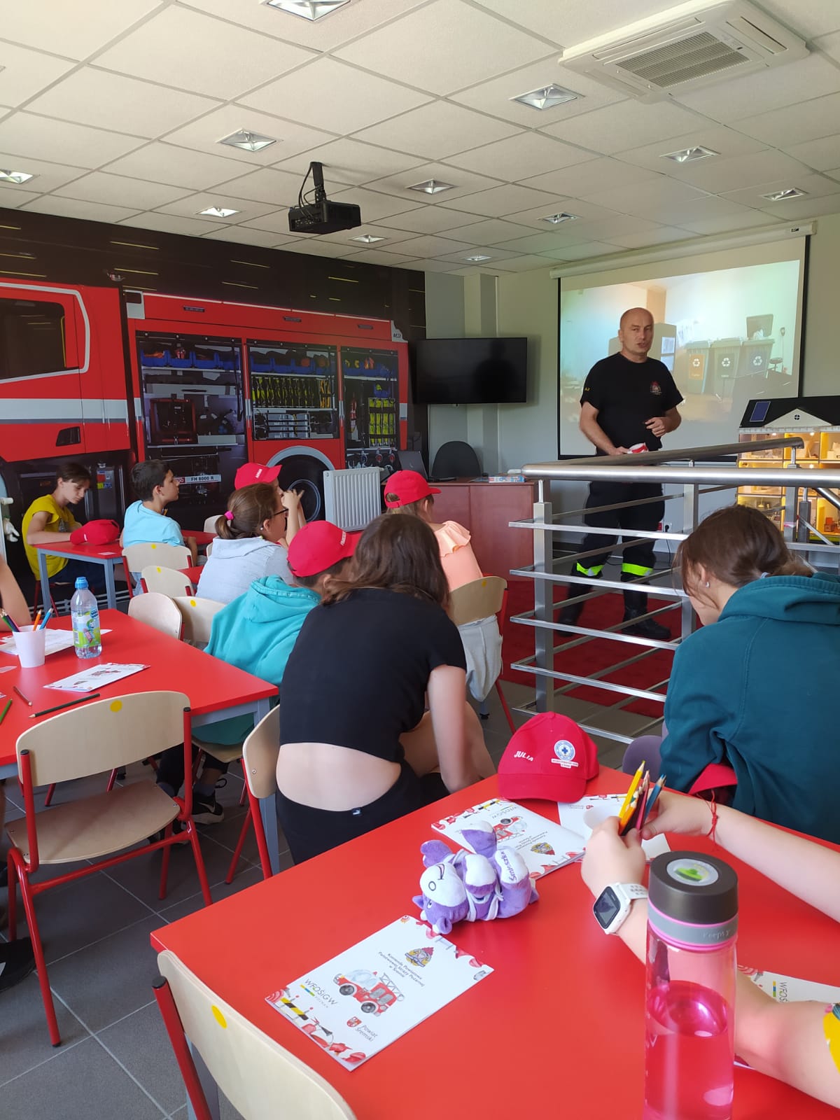 Podczas wizyty funkcjonariusze Komendy Powiatowej PSP w Śremie zapoznali uczestników półkolonii ze specyfiką pracy strażaka, zaprezentowali sprzęt będący na wyposażeniu tutejszej jednostki oraz - przy wykorzystaniu salki edukacyjnej - opowiedzieli o zagrożeniach występujących na codzień w naszym otoczeniu.