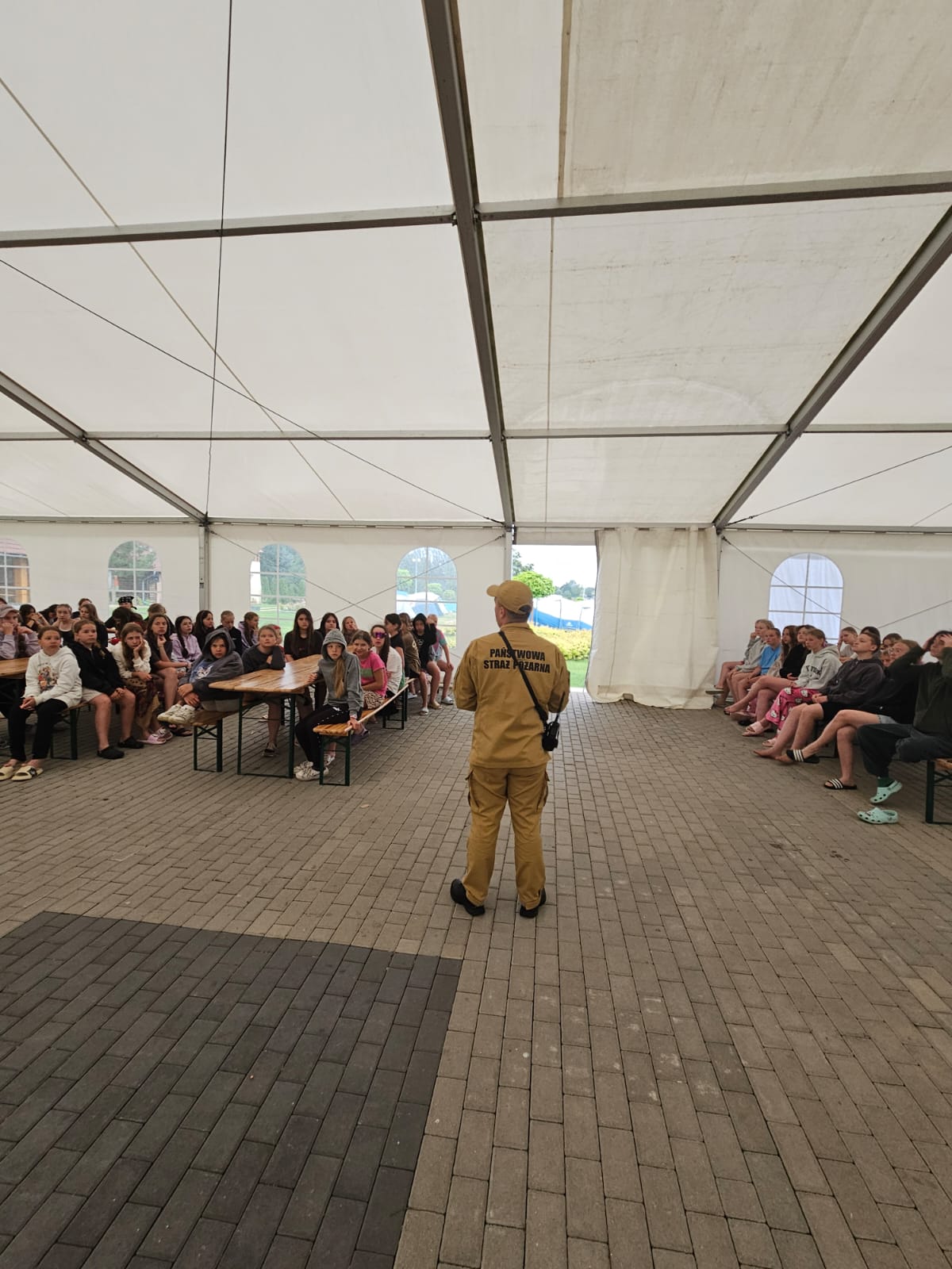 W związku z rozpoczętym turnusem obozu młodzieżowego w Serdecznej Osadzie w miejscowości Mełpin, przeprowadzono spotkanie i pogadankę przez funkcjonariusza KP PSP Śrem, który tego dnia spotkał się z młodzieżą na terenie ośrodka wypoczynku. W trakcie spotkania sprawdzono pod kątem zabezpieczeń przeciwpożarowych obiekty znajdujące się w Serdecznej Osadzie a także drogi ewakuacyjne i miejsca bezpieczne w przypadku wystąpienia zagrożenia. Kolejnym elementem była pogadanka z uczestnikami turnusu wypoczynkowego na temat bezpieczeństwa i zachowań w ramach prewencji społecznej oraz bezpiecznych zachowań w trakcie wakacji oraz nad wodą. Cykl spotkań będzie kontynuowany podczas zmiany turnusów wypoczynkowych.