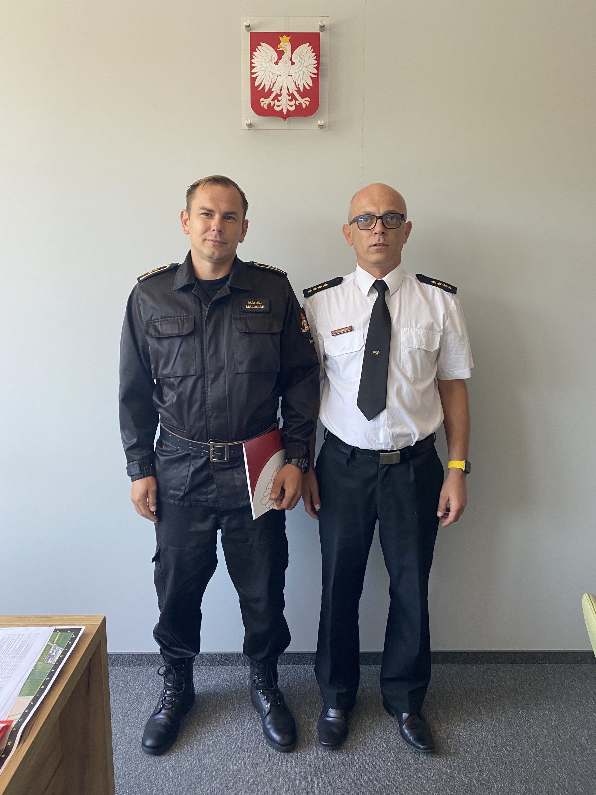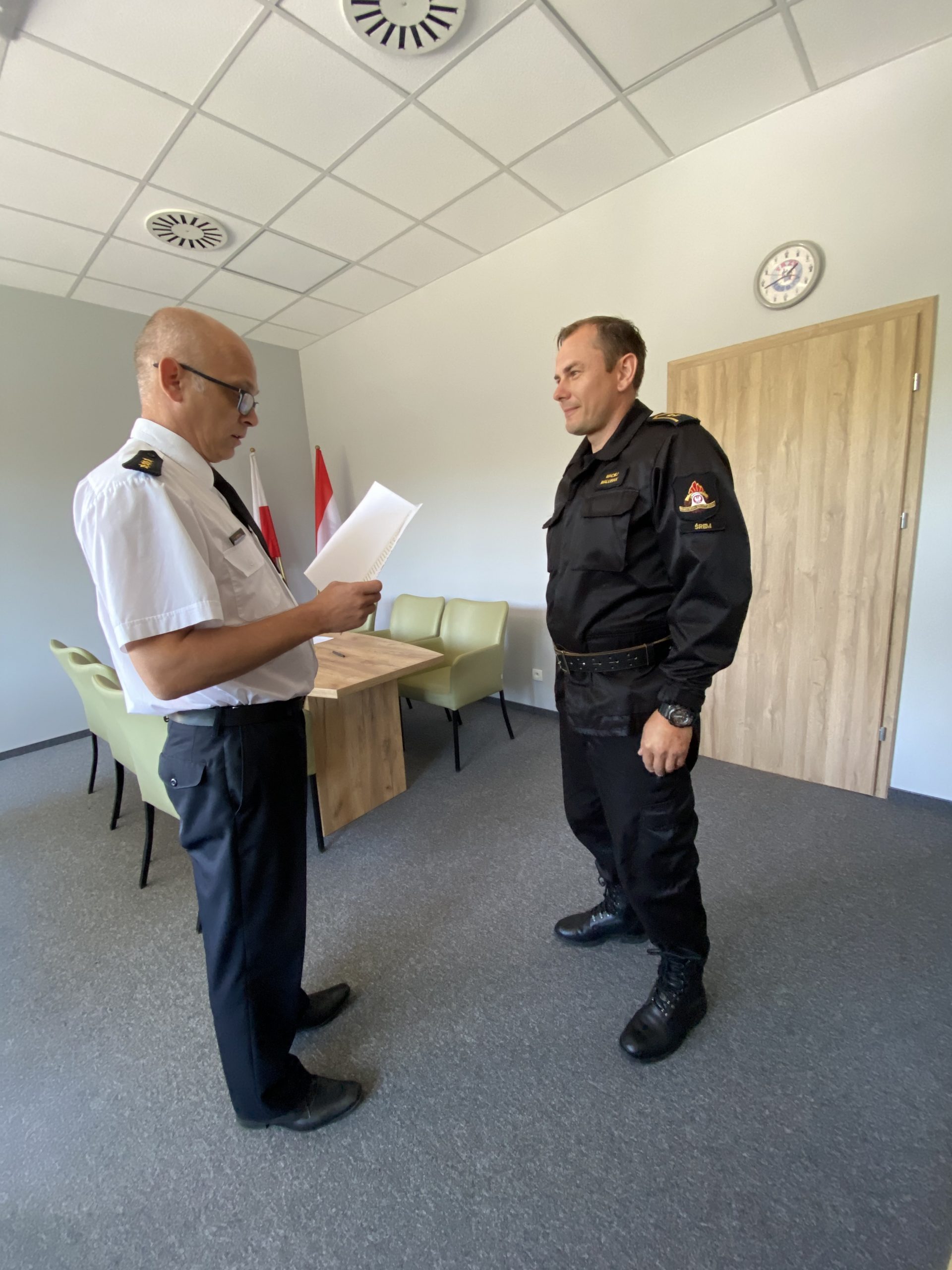 26 lipca br. st.asp. Maciej Malusiak będąc po służbie był świadkiem wypadku z udziałem rowerzysty i samochodu osobowego. Udzielił pomocy potrąconemu rowerzyście również w tym samym czasie informując stanowisko kierowania komendanta powiatowego PSP w Śremie o pilnej potrzebie zadysponowania sił i środków do tego zdarzenia. Swoją postawą dał przykład jak powinien zachować się funkcjonariusz (strażak) w obliczu zagrożenia zdrowia lub życia a także każdy obywatel. W związku z zaistniałym zdarzeniem funkcjonariusz naszej komendy został wyróżniony listem gratulacyjnym Wielkopolskiego Komendanta Wojewódzkiego st.bryg.Dariusza Matczaka. W imieniu Wielkopolskiego Komendanta Wojewódzkiego PSP wręczenia listu dokonał Komendant Powiatowy PSP w Śremie st.kpt. Tomasz Kierzek.