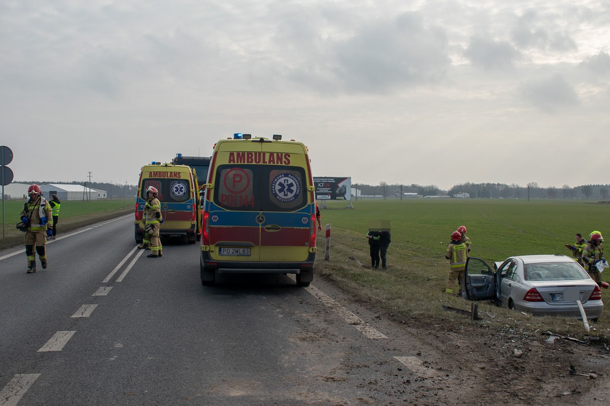 Niezwłocznie zadysponowano 3 zastępy z JRG Śrem, OSP Niesłabin i OSP Pysząca. Po przybyciu na miejsce, w rozpoznaniu ustalono, że w zdarzeniu brały udział 2 samochody osobowe, którymi łącznie podróżowały 3 osoby. Wszystkie z nich wymagały pomocy medycznej, której w pierwszej fazie działań udzielili strażacy JRG Śrem. Ze względu na charakter zdarzenia do działań zadysponowano również śmigłowiec LPR.