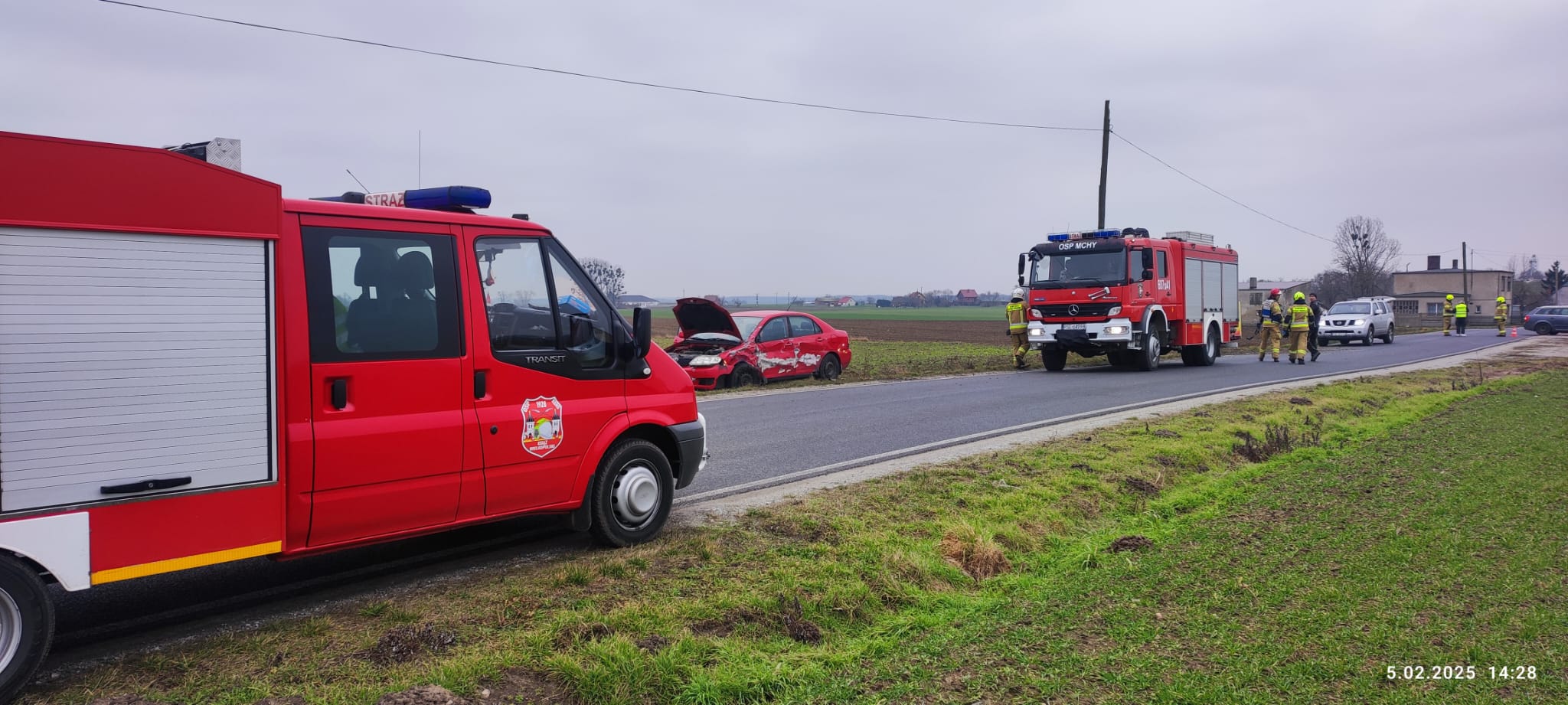 5 lutego 2025 roku o godz.14.02 Stanowisko Kierowania Komendanta Powiatowego Państwowej Straży Pożarnej w Śremie, przyjęło zgłoszenie o zdarzeniu drogowym, do którego doszło w miejscowości Mchy gm.Książ Wielkopolski. W zdarzeniu brały udział dwa pojazdy, którymi podróżowały łącznie 3 osoby. Dwie z nich ze względu na brak obrażeń odmówiły pomocy medycznej, natomiast trzecia ranna osoba z podejrzeniem urazu nosa została wstępnie zaopatrzona przez strażaków i ostatecznie zabrana przez ZRM do szpitala w Śremie. Na uwagę zasługuje fakt iż pierwszej pomocy medycznej, jeszcze przed przyjazdem służb udzielał funkcjonariusz śremskiej JRG, który był świadkiem zdarzenia.