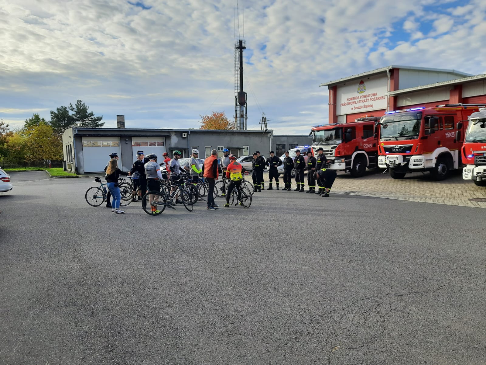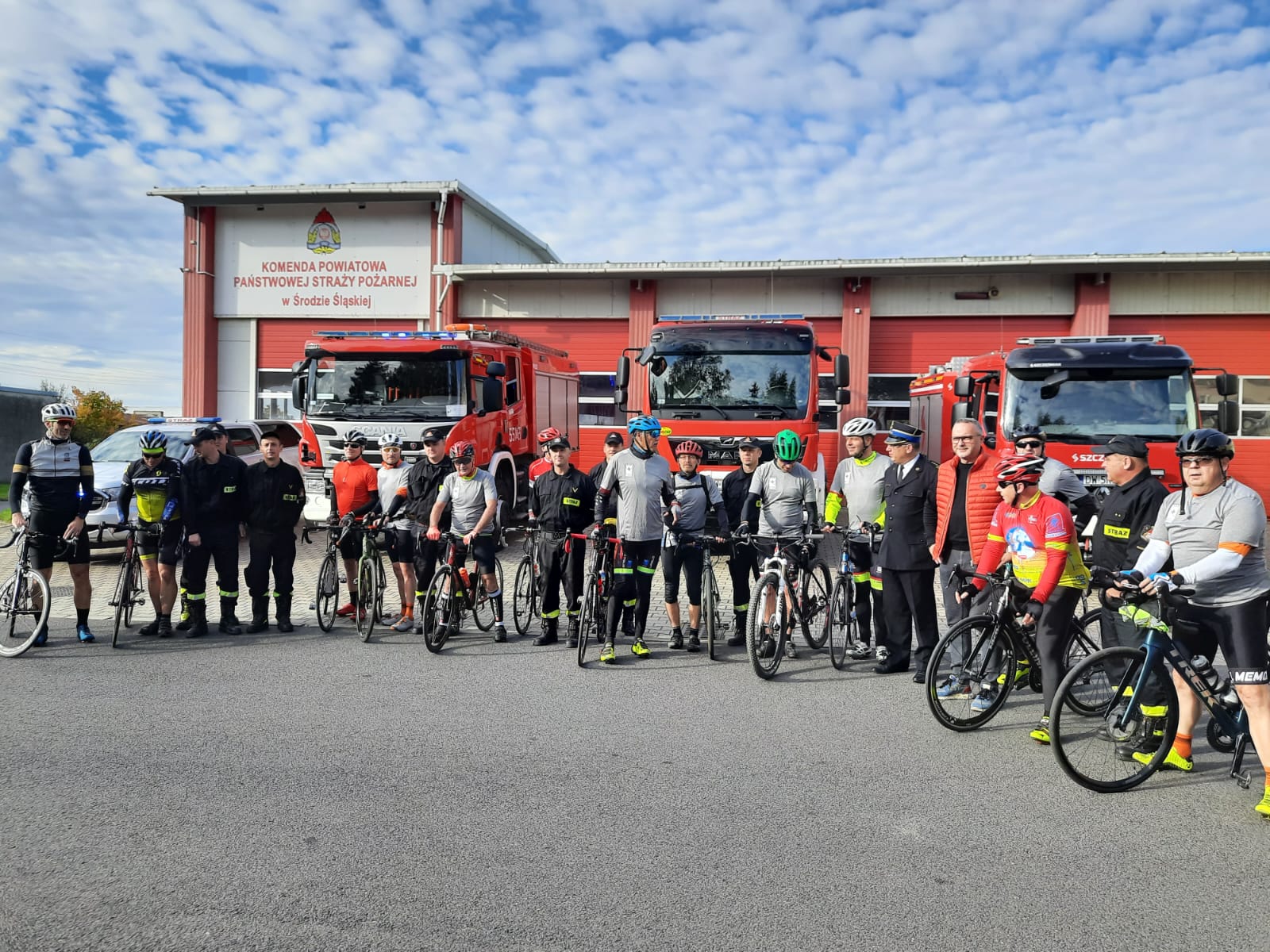 16 października 2022 roku kilka minut po godzinie 10 spod Komendy Powiatowej Państwowej Straży Pożarnej w Środzie Śląskiej rowerzyści ze Stowarzyszenia „Klub Turystyki Wszelakiej”, a z nimi nasz funkcjonariusz ogn. Piotr Ziejka, wyruszyli w rajd charytatywny, mający na celu rozpropagowanie zbiórki na rzecz rodziny tragicznie zmarłego druha z OSP Balice. Do granicy powiatu średzkiego eskortę rowerzystów zapewnił pojazd JRG Środa Śląska. W trakcie stukilometrowego rajdu kolarze zatrzymywali się pod remizami OSP (m.in. w Chomiąży, Prochowicach, Ścinawie), gdzie rozdawali ulotki zawierające link do stworzonej specjalnie na ten cel zbiórki pieniędzy. Przejazd zakończył się koło godziny 15 słodkim poczęstunkiem w Powiatowym Centrum Kultury Alternatywnej.