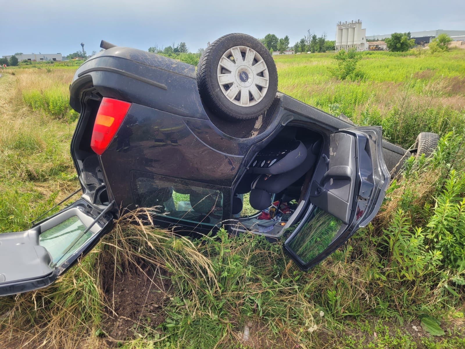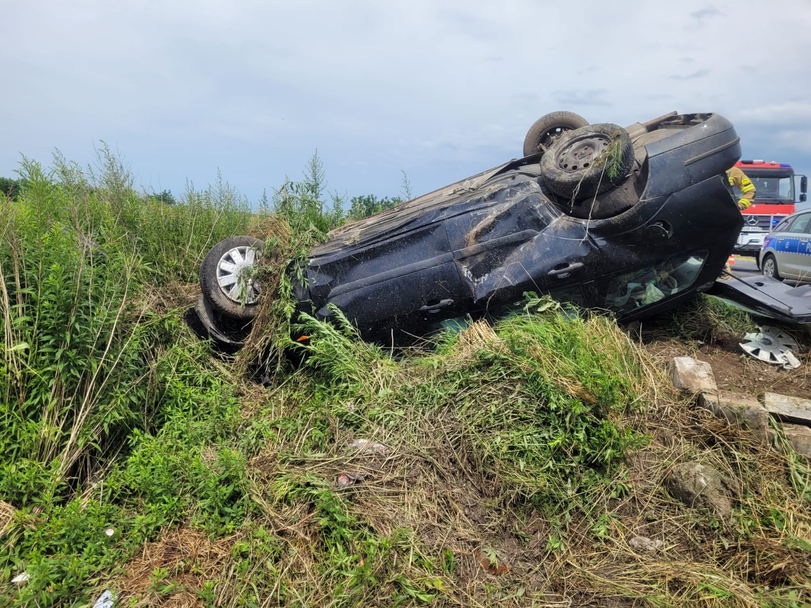 W pierwszym zdarzeniu doszło do dachowania samochodu osobowego, którym podróżowała jedna osoba. Nasze działania polegały na zabezpieczeniu miejsca zdarzenia oraz zakręceniu butli z gazem LPG w pojeździe. Udzielono kwalifikowanej pierwszej pomocy kierowcy następnie przekazano poszkodowanego Zespołowi Ratownictwa Medycznego. Ratownicy medyczni po przebadaniu kierowcy zabrali go z miejsca zdarzenia do wrocławskiego szpitala.