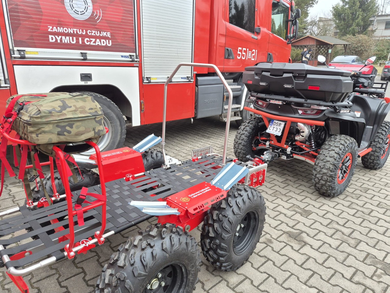 Komenda Powiatowa Państwowej Straży Pożarnej w Środzie Śląskiej wzbogaciła się o nowy pojazd specjalistyczny ATV typu quad wraz z przyczepką ewakuacyjną i transportową, który został przekazany przez Starostwo Powiatowe w Środzie Śląskiej. Nowy sprzęt znacząco zwiększy możliwości operacyjne strażaków podczas działań ratowniczych prowadzonych w trudnym terenie.