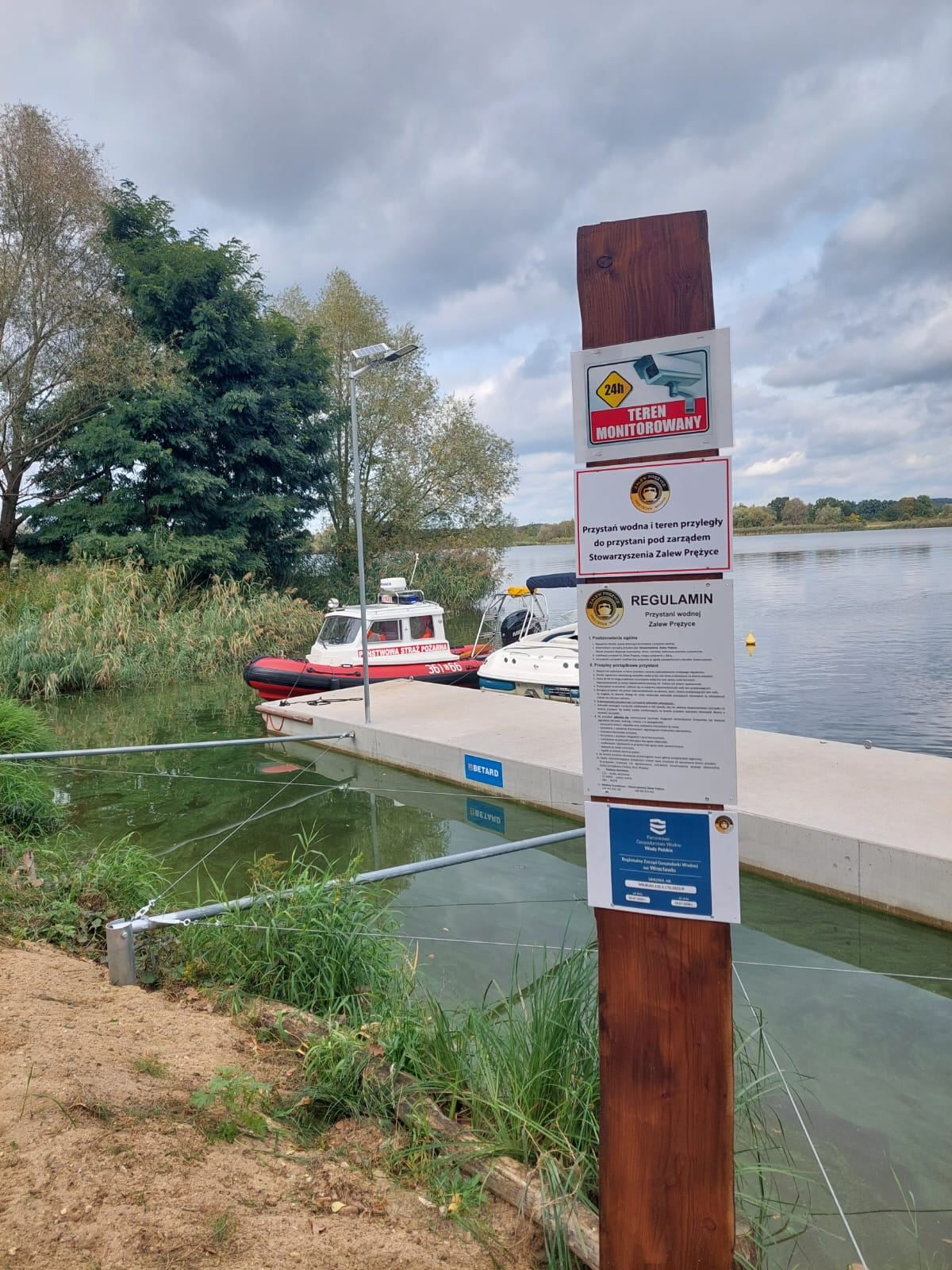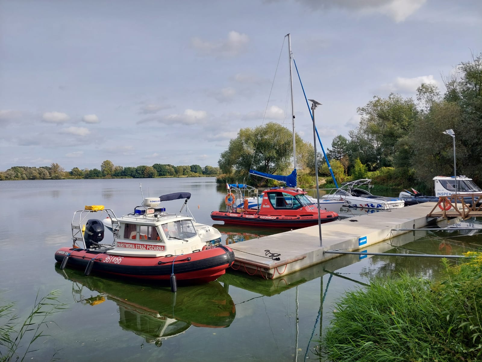6 października 2023r. odbyło się uroczyste otwarcie przystani na Zalewie Prężyce, która stanie się dodatkowym wzmocnieniem pozycji operacyjnej dla służb ratowniczych przy ewentualnych działaniach na rzece Odra na odcinku powyżej stopnia wodnego „Brzeg Dolny”. Była to również możliwość sprawdzenia zdolności wodowania oraz manewrowania nowej łodzi PARKER 630 przekazanej na stan naszej Jednostki z Komendy Miejskiej PSP w Legnicy. Nowa łódź o masie własnej 1500kg wyposażona jest silnik o mocy 200 KM, który pozwala na prowadzenie skutecznych działań ratowniczych na rzece Odra. Na wyposażeniu posiada niezbędny sprzęt wykorzystywany w działaniach na wodach oraz echosondę LOWRANCE HDS 5.
