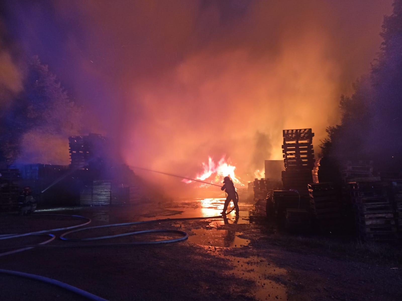 Wczoraj o godzinie 23.22 Dyżurny SKKP przyjął zgłoszenie o pożarze palet na terenie jednej z posesji przy DK 94 w Krępicach. Po dojeździe na miejsce pierwszych zastępów, ratownicy zastali w pełni rozwinięty pożar sterty palet o wymiarach 20m x 25m x 5m. Siły i środki zadysponowane w pierwszym rzucie były niewystarczające ze względu na zaawansowanie pożaru oraz brak zaopatrzenia wodnego. Dyżurny natychmiast zadysponował kolejne siły w postaci ciężkich samochodów gaśniczych oraz cysternę z JRG 4 Wrocław.
