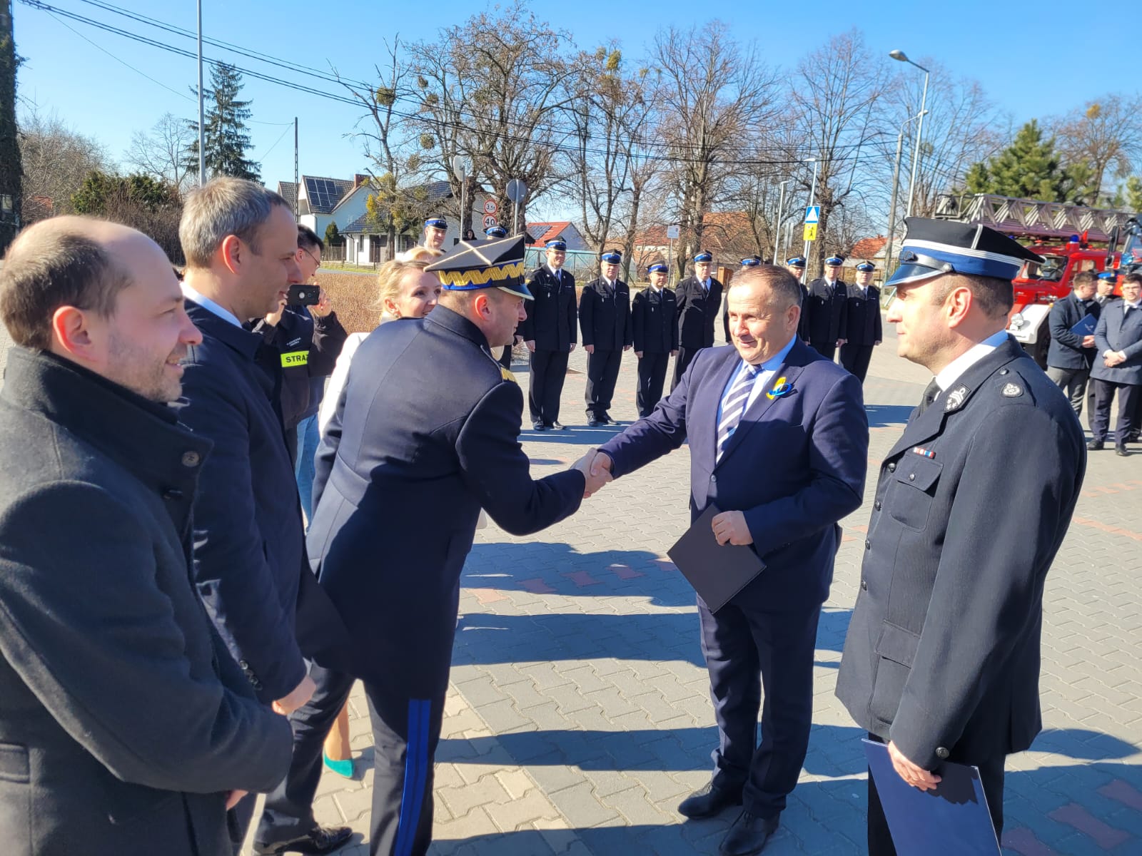 Promesy z rąk nadbryg. Adama Konicznego – Zastępcy Komendanta Głównego Państwowej Straży Pożarnej, Pana Łukasza Kasztelowicza – Prezesa Zarządu Wojewódzkiego Funduszu Ochrony Środowiska i Gospodarki Wodnej we Wrocławiu, Pana Pawła Hreniaka oraz Pani Agnieszki Soin – Posłów Na Sejm RP poza Prezesami jednostek OSP odebrali również włodarze Gmin, na terenie których mają one swoje siedziby.