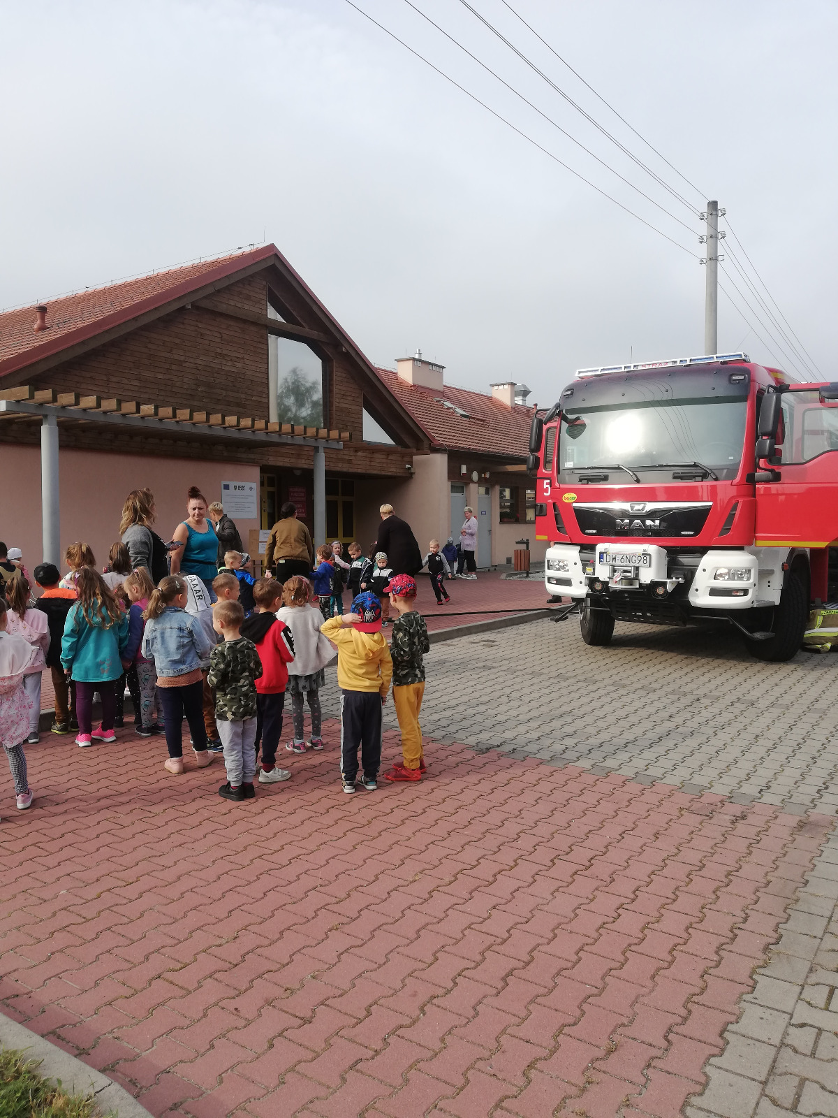 Strażacy w publicznym przedszkolu w Szczepanowie