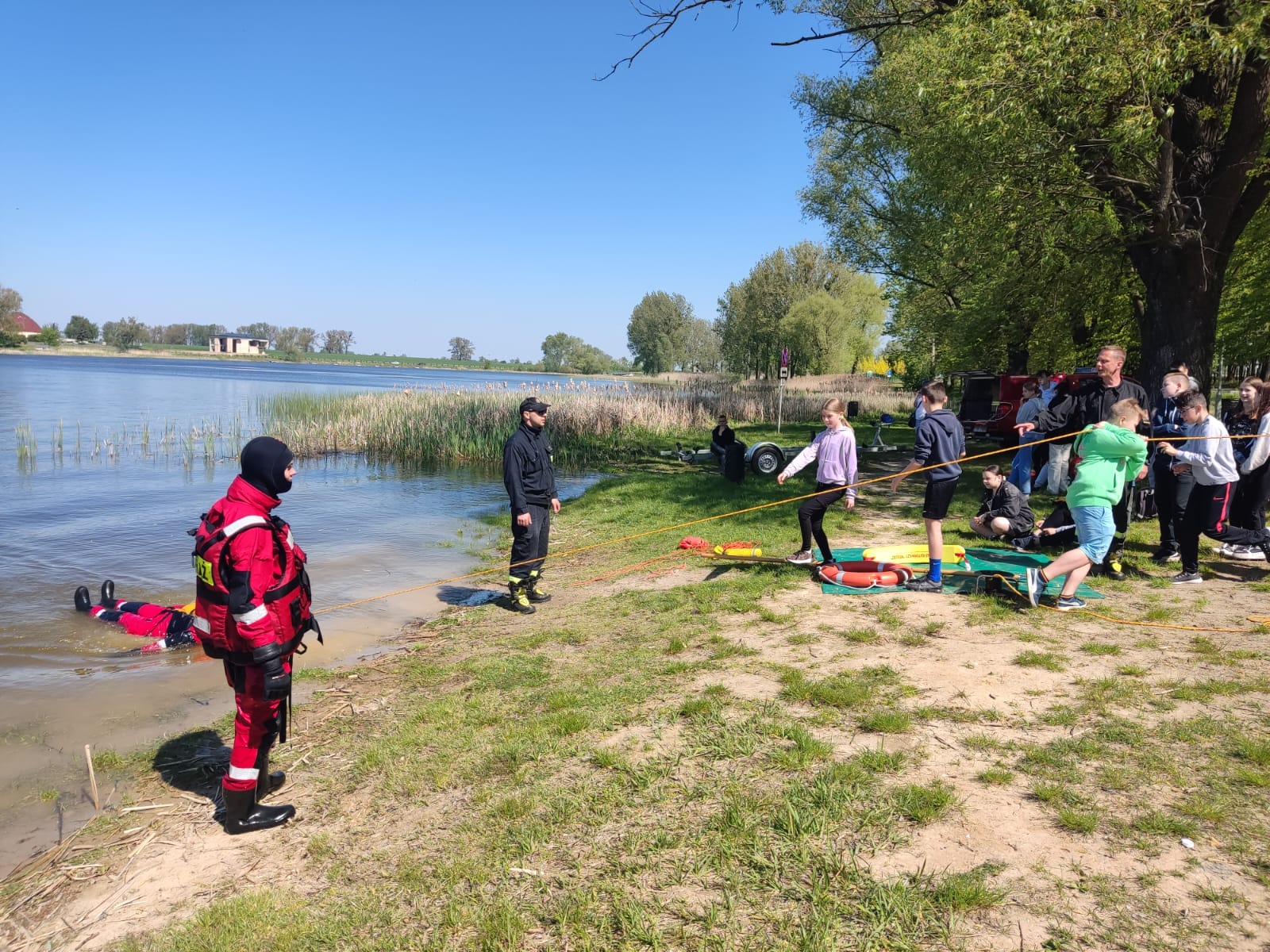 W piątek 12 maja w ramach programu „Aktywni Błękitni - szkoła przyjazna wodzie” Komenda Powiatowa PSP w Środzie Wlkp. przeprowadziła szkolenie wraz z pokazem ratownictwa wodnego dla uczniów klas piątych i siódmych Szkoły Podstawowej nr 2.