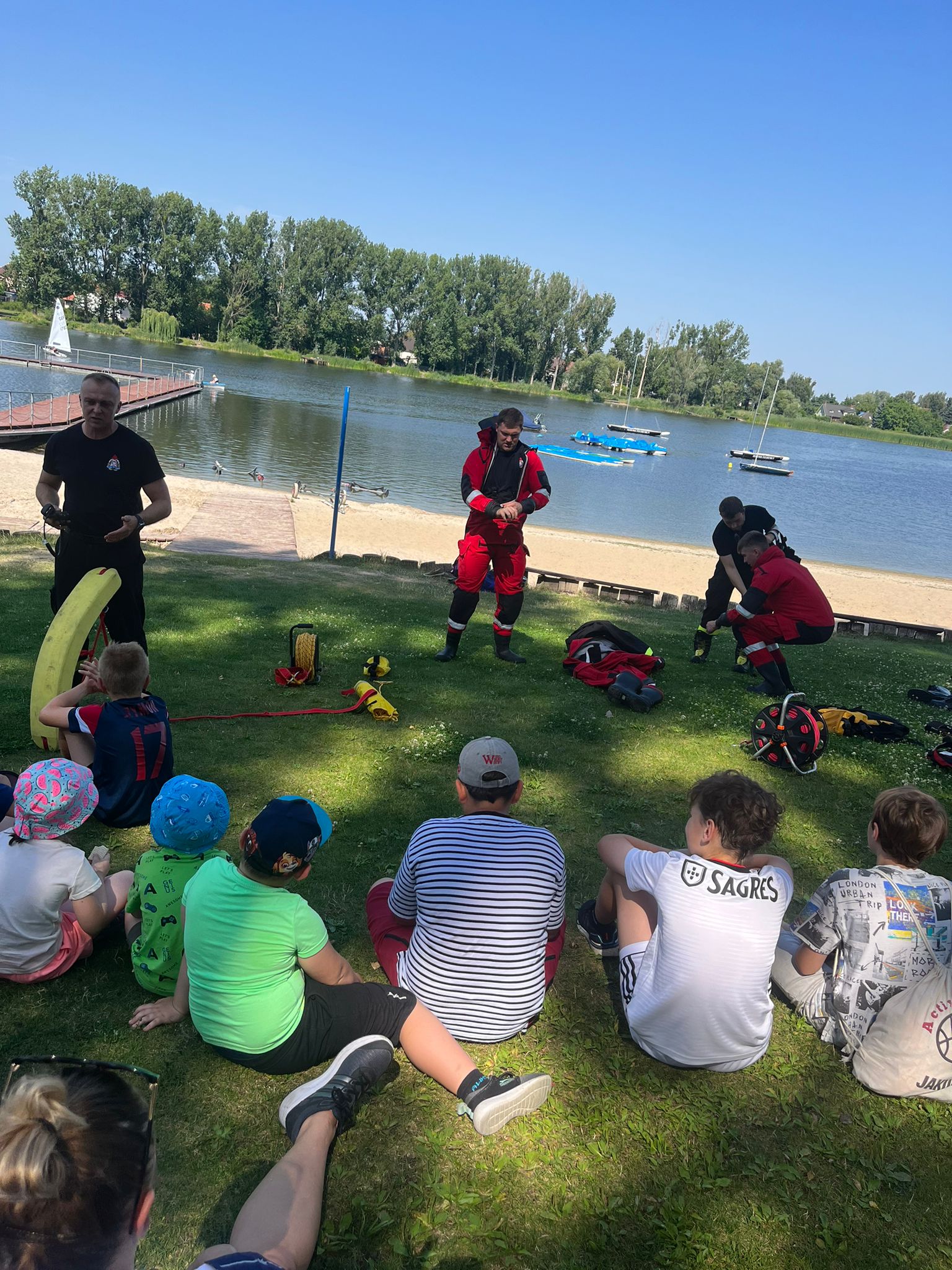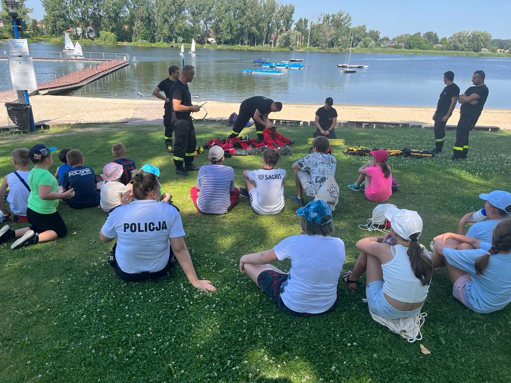 Wakacje oraz upalna pogoda to idealne warunki do spędzania wolnego czasu nad średzkim jeziorem. Grupa dzieci z koloni z uwagę przysłuchiwała się dobrym radom oraz bezpiecznym zasadom odpoczynku, októrych opowiadali strażacy ze średzkiej JRG. Dzieci mogły zobaczyć jak wygląda akcja ratownicza na wodzie oraz jakiego sprzętu uzywają strażacy do ratowania osób tonących. Mogły także same spróbować swoich sił podczas różnych zadań przygotowanych przez strażaków.