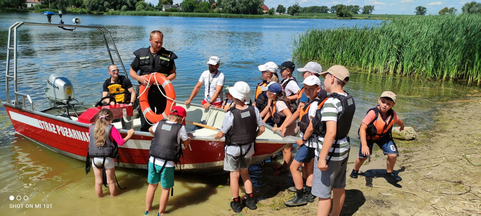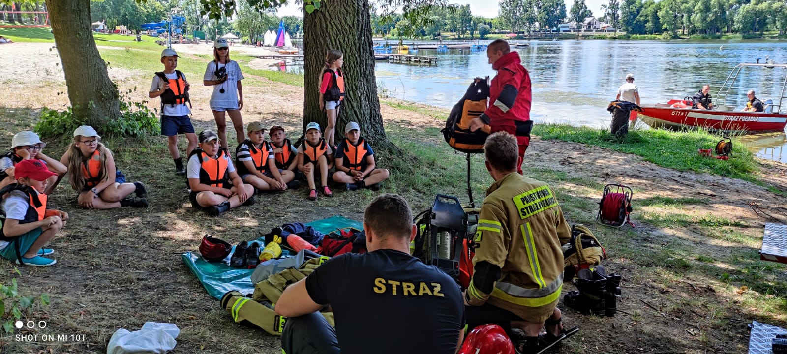 Młodzi żeglarze z Akademii Żeglarskiej w Środzie Wielkopolskiej mieli okazję zapoznać się z pracą strażaków podczas działań na wodzie.
