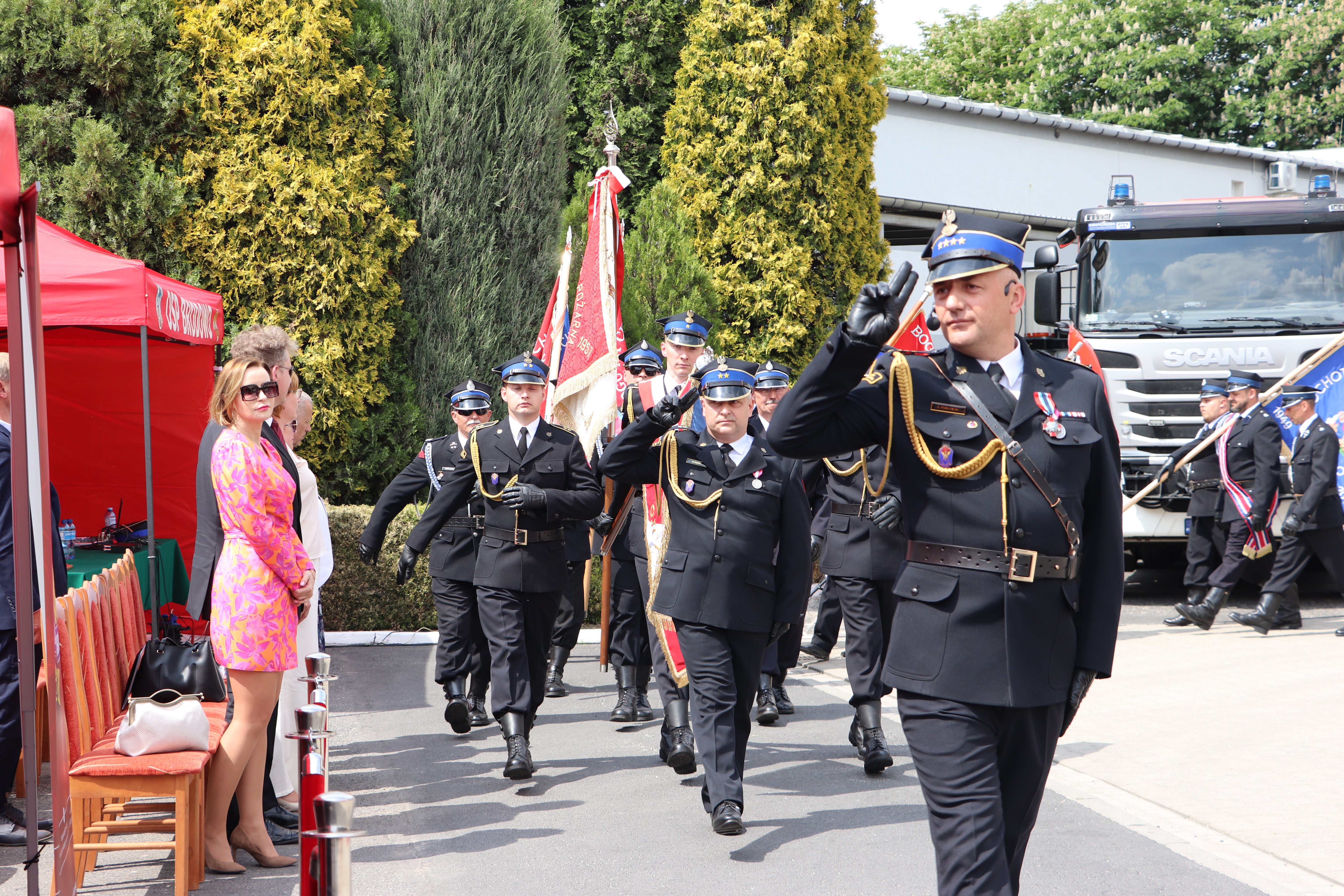 W uroczystości wzięli udział funkcjonariusze oraz pracownicy cywilni Komendy Powiatowej Państwowej Straży Pożarnej w Środzie Wlkp., emeryci, druhny i druhowie Ochotniczych Straży Pożarnych, poczty sztandarowe z jednostek OSP powiatu średzkiego oraz zaproszeni goście w osobach: