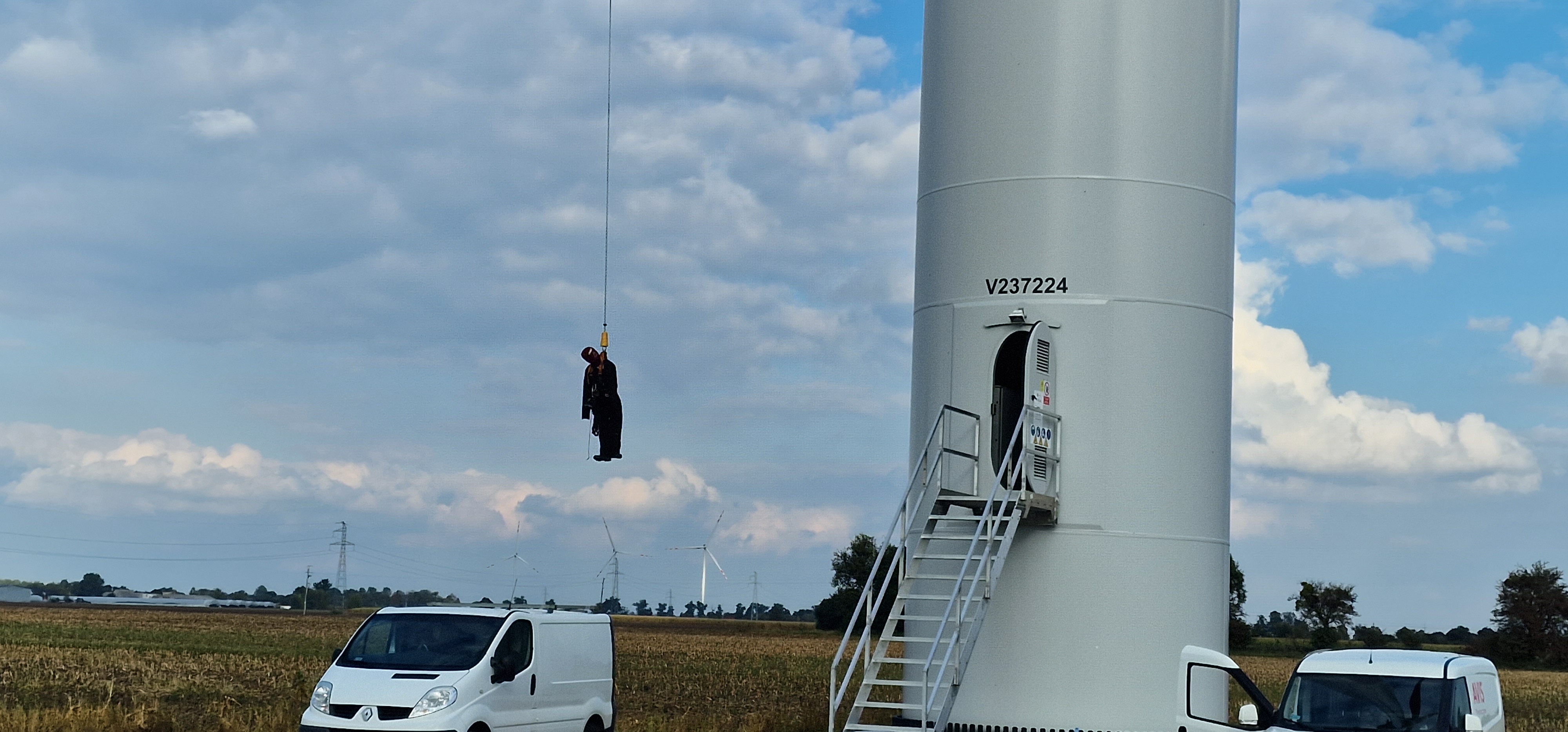 Na terenie powiatu średzkiego znajduje się kilkadziesiąt turbin wiatrowych produkujących zieloną energię. Ze względu na charakterystykę tych urządzeń podczas ich eksploatacji może dojść do różnego rodzaju sytuacji awaryjnych, na które muszą być przygotowani strażacy.