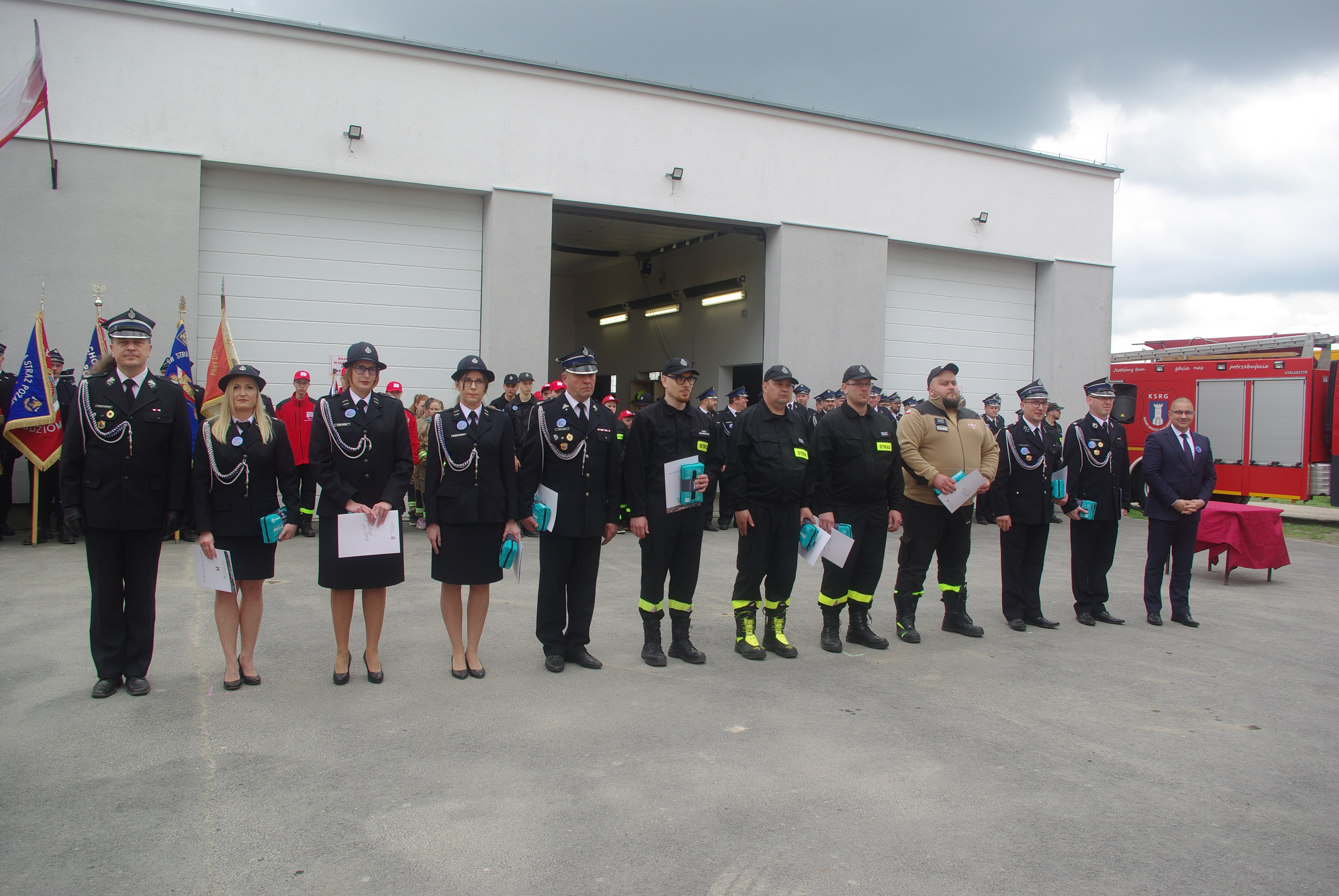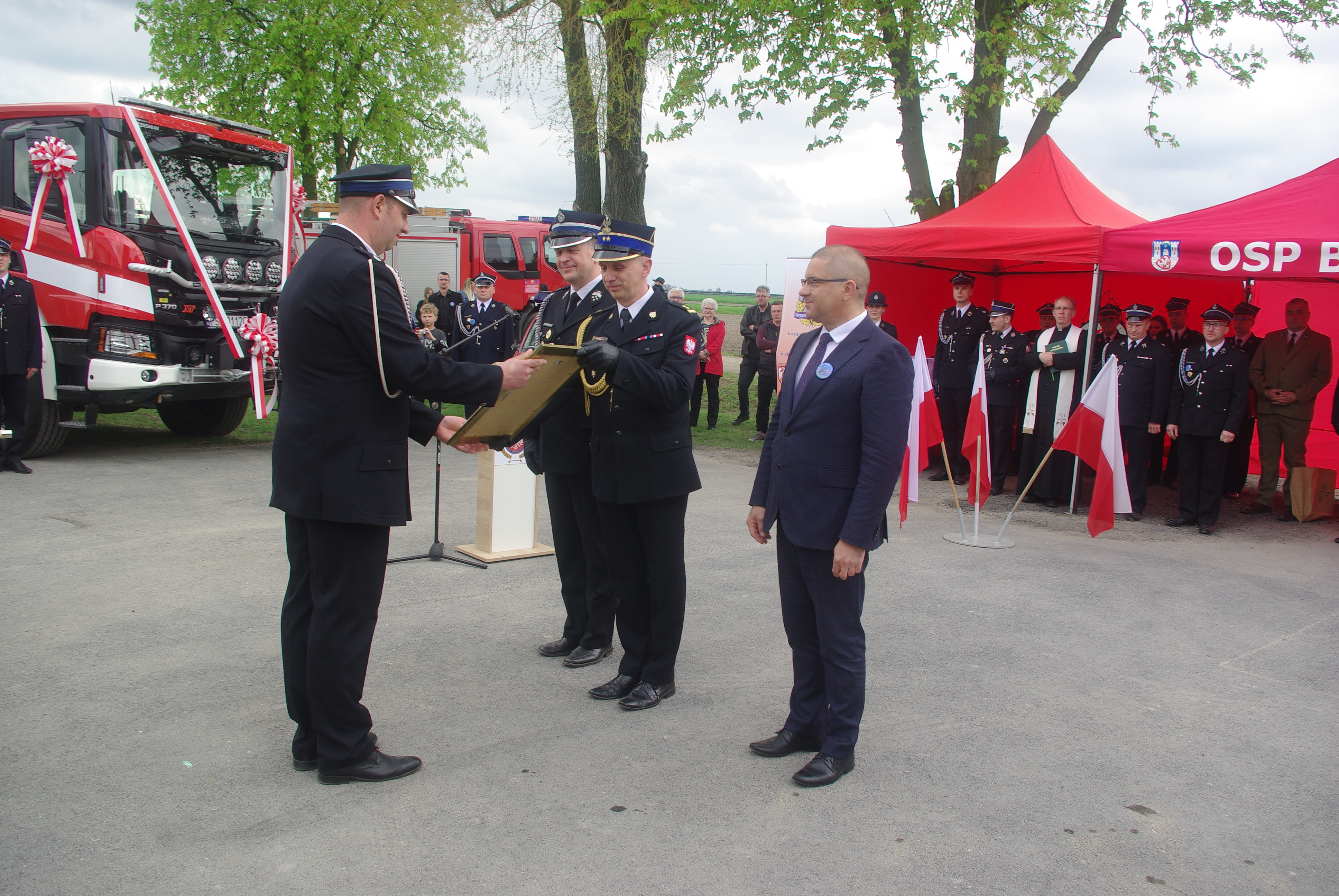 W dalszej części nastąpiło wręczenie aktu o włączenie Jednostki Ochotniczej Straży Pożarnej w Koszutach do Krajowego Systemu Ratowniczo-Gaśniczego oraz uroczyste przekazanie i poświęcenie samochodu ratowniczo – gaśniczego GCBA SCANIA dla Ochotniczej Straży Pożarnej w Brodowie oraz przekazanie przez Komendę Powiatową Państwowej Straży Pożarnej w Środzie Wielkopolskiej samochodu operacyjnego Opel Astra dla Ochotniczej Straży Pożarnej w Nowym Mieście Nad Wartą.