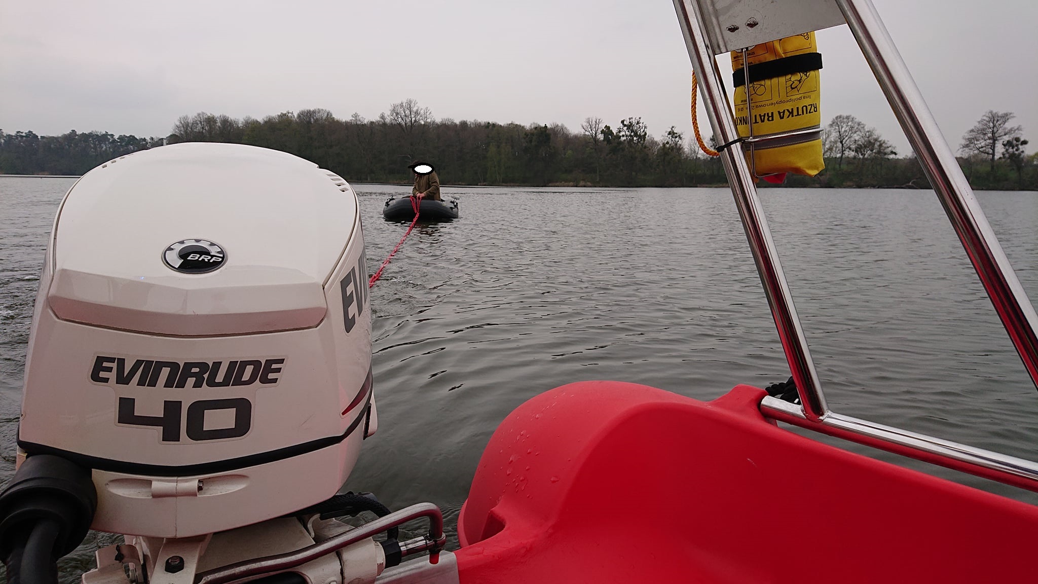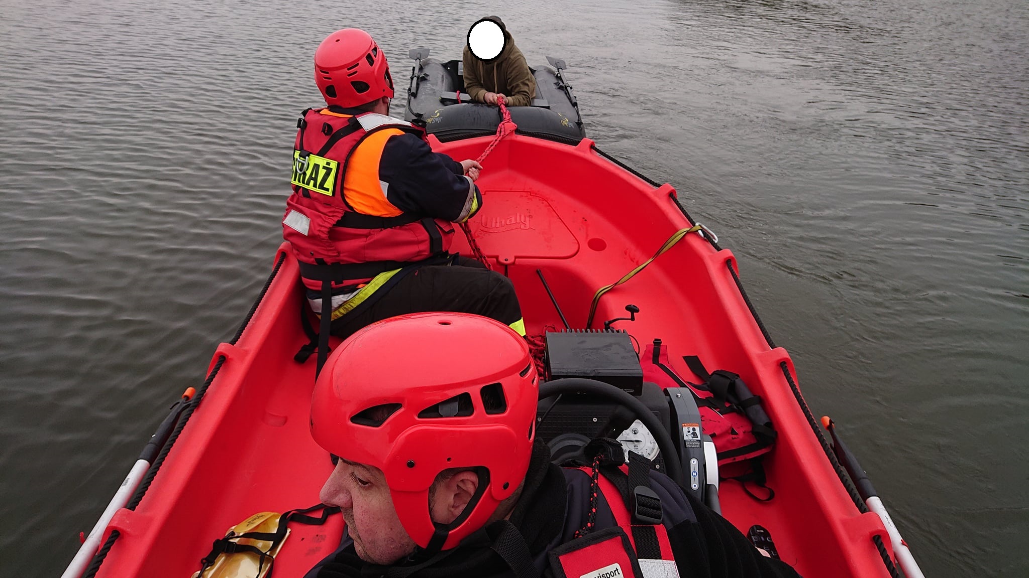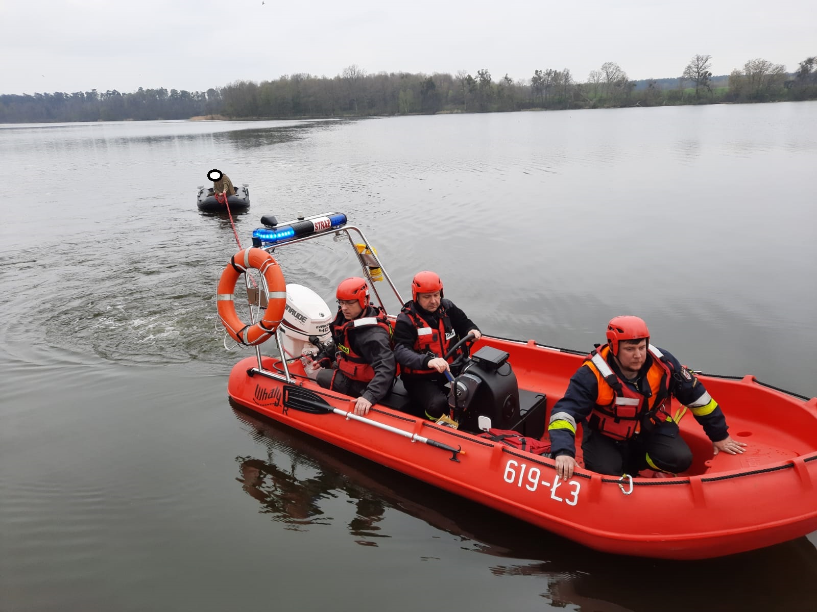 Jako pierwsi na miejsce akcji dotarli druhowie z OSP Zaniemyśl wraz z łodzią ratowniczą „Kasia”, którzy szybko i sprawnie dopłynęli do wędkarza znajdującego się na jeziorze. Ratownicy wyplątali sieć z silnika i odholowali bezpiecznie ponton wraz z wędkarzem na brzeg.