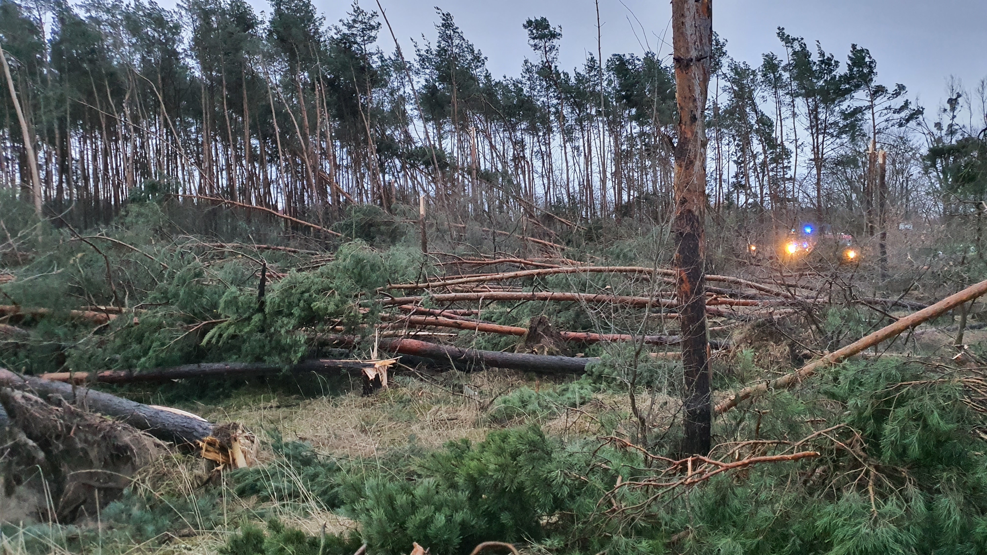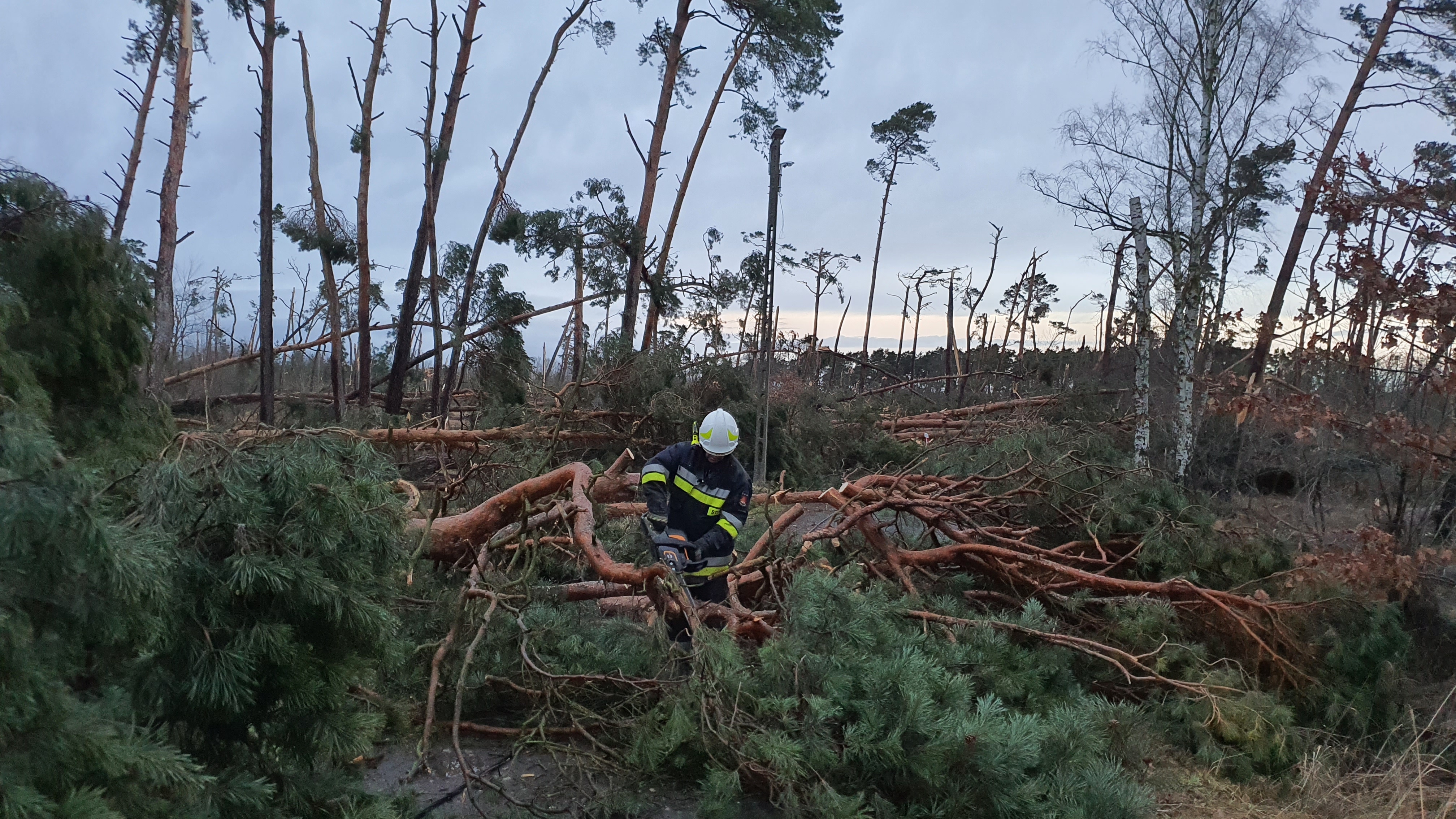 Działania Straży Pożarnej polegały głównie na usuwaniu powalonych drzew i połamanych konarów z dróg, dozorowaniu zerwanych linii energetycznych, zabezpieczaniu uszkodzonych dachów oraz usuwaniu elementów konstrukcyjnych z uszkodzonych budynków.