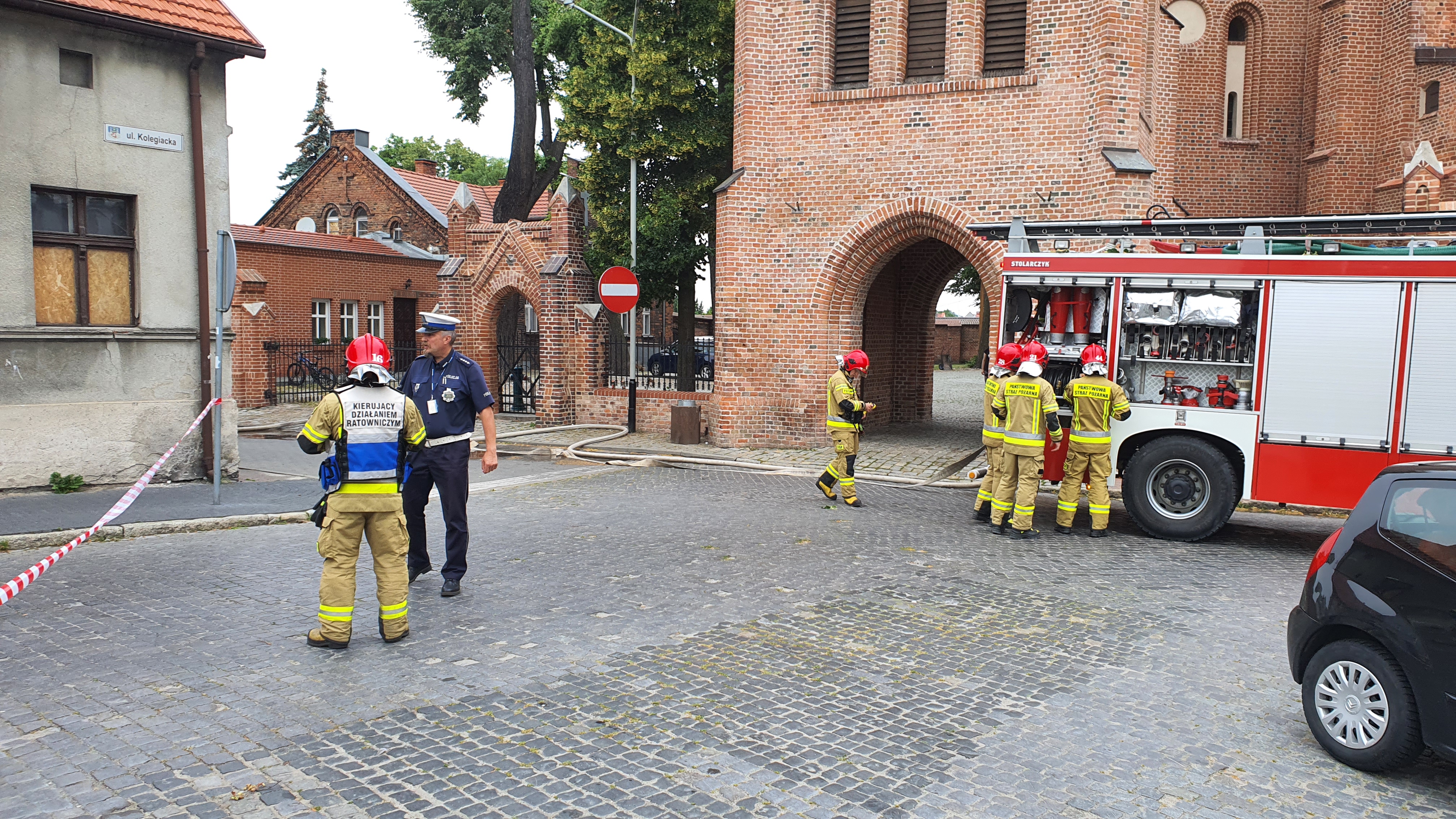Do bardzo niebezpiecznego zdarzenia doszło w czwartek w godzinach przedpołudniowych w centrum miasta przy Kolegiacie Średzkiej. O godz. 10.48 Stanowisko Kierowania Komendanta Powiatowego PSP w Środzie Wielkopolskiej przyjęło zgłoszenie o wyciekającym gazie z instalacji niskiego ciśnienia w niezamieszkałym budynku przy ul. Kolegiackiej. Na miejscu zdarzenia pogotowie gazowe prowadziło już prace mające na celu zlikwidowanie wycieku. Przybyli na miejsce strażacy wraz z policją w pierwszej kolejności rozpoczęli ewakuację ludzi z mieszkań, lokali usługowych raz budynków użyteczności publicznej znajdujących się wokół uszkodzonej instalacji gazowej. W sumie ewakuowano 88 osób. Po uszczelnieniu wycieku przez pogotowie gazowe, strażacy przewietrzyli budynek oraz piwnicę i sprawdzili urządzeniami pomiarowymi stężenie gazu w powietrzu. Po trwającej ponad trzy godziny akcji wszyscy mieszkańcy mogli bezpiecznie wrócić do swoich mieszkań a pracownicy do pracy. W działaniach udział brali strażacy z Jednostki Ratowniczo – Gaśniczej w Środzie Wielkopolskiej oraz strażacy z OSP w Brodowie i Mącznikach.