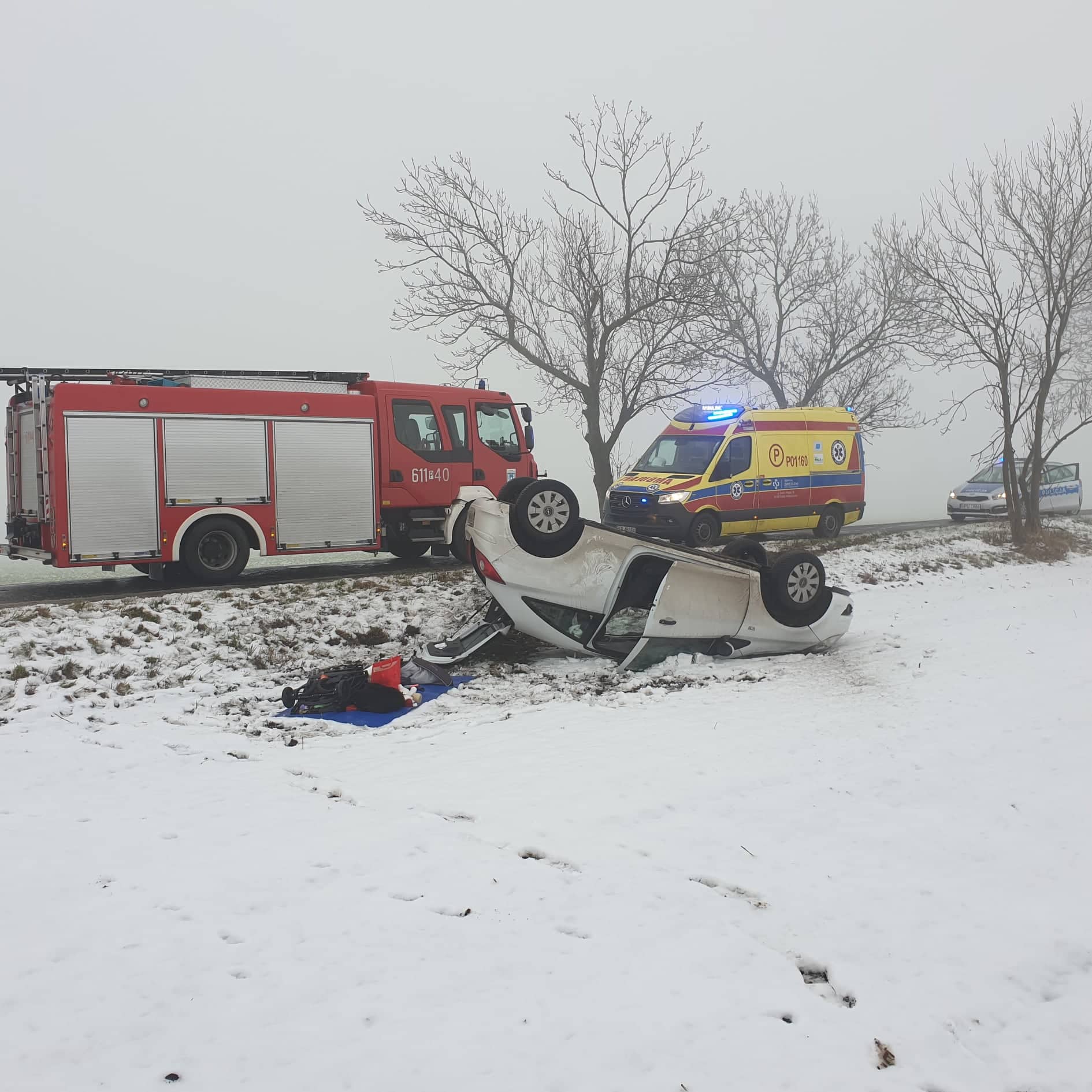 13 grudnia 2021 roku o godzinie 8:19 strażacy otrzymali informację o dachowaniu samochodu pomiędzy Słupią Wielką, a Koszutami. Niezwłocznie do zdarzenia zadysponowano dwa zastępy z Jednostki Ratowniczo-Gaśniczej w Środzie Wielkopolskiej oraz jeden z Ochotniczej Straży Pożarnej w Koszutach. Po przybyciu na miejsce zdarzenia i przeprowadzeniu rozpoznania stwierdzono, że poza jezdnią w pozycji na dachu znajduje się samochód osobowy, wewnątrz którego przebywają dwie osoby. Działania strażaków polegały na zabezpieczeniu miejsca zdarzenia, udzieleniu pomocy poszkodowanym w opuszczeniu pojazdu oraz przekazaniu ich przybyłemu na miejsce Zespołowi Ratownictwa Medycznego.
