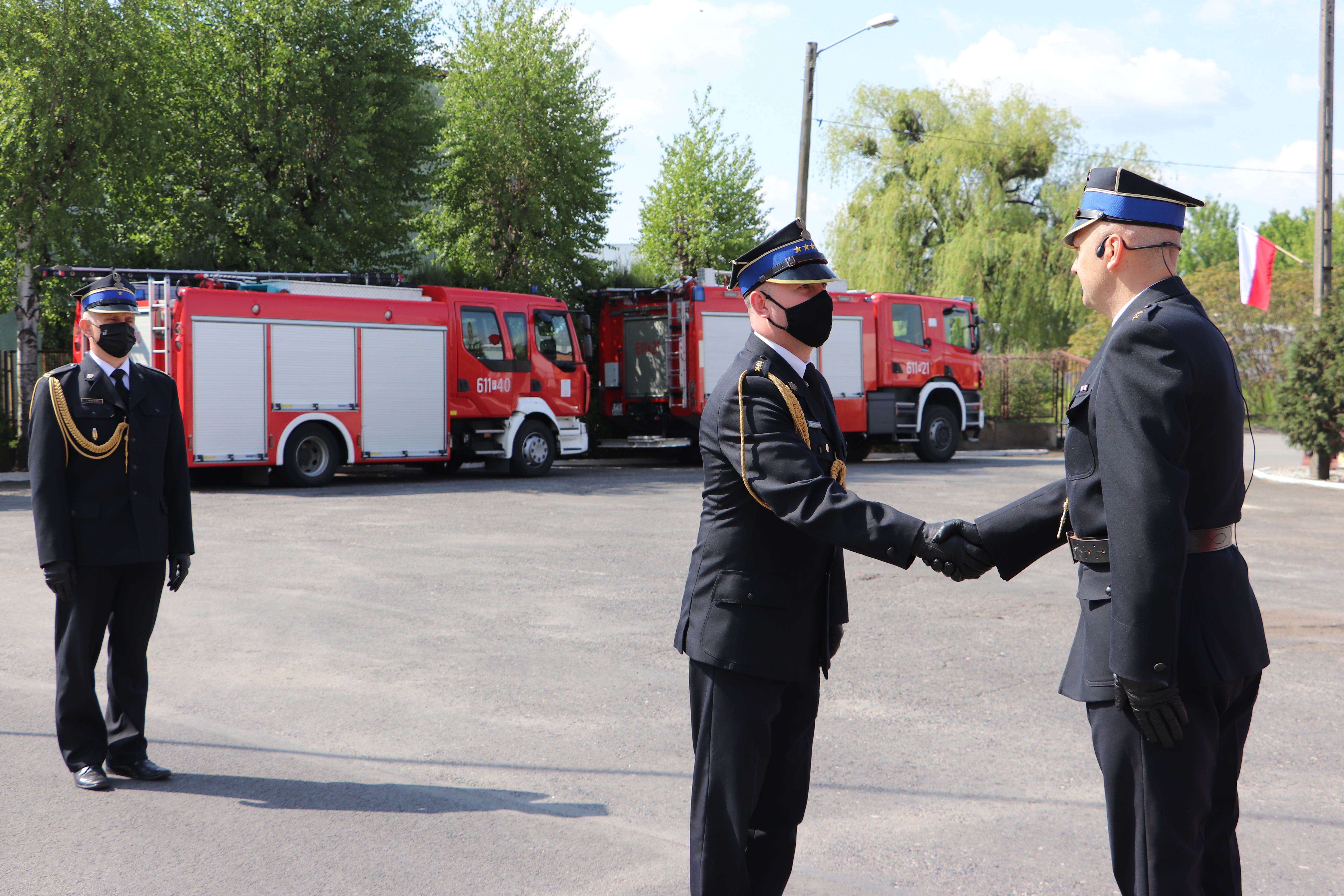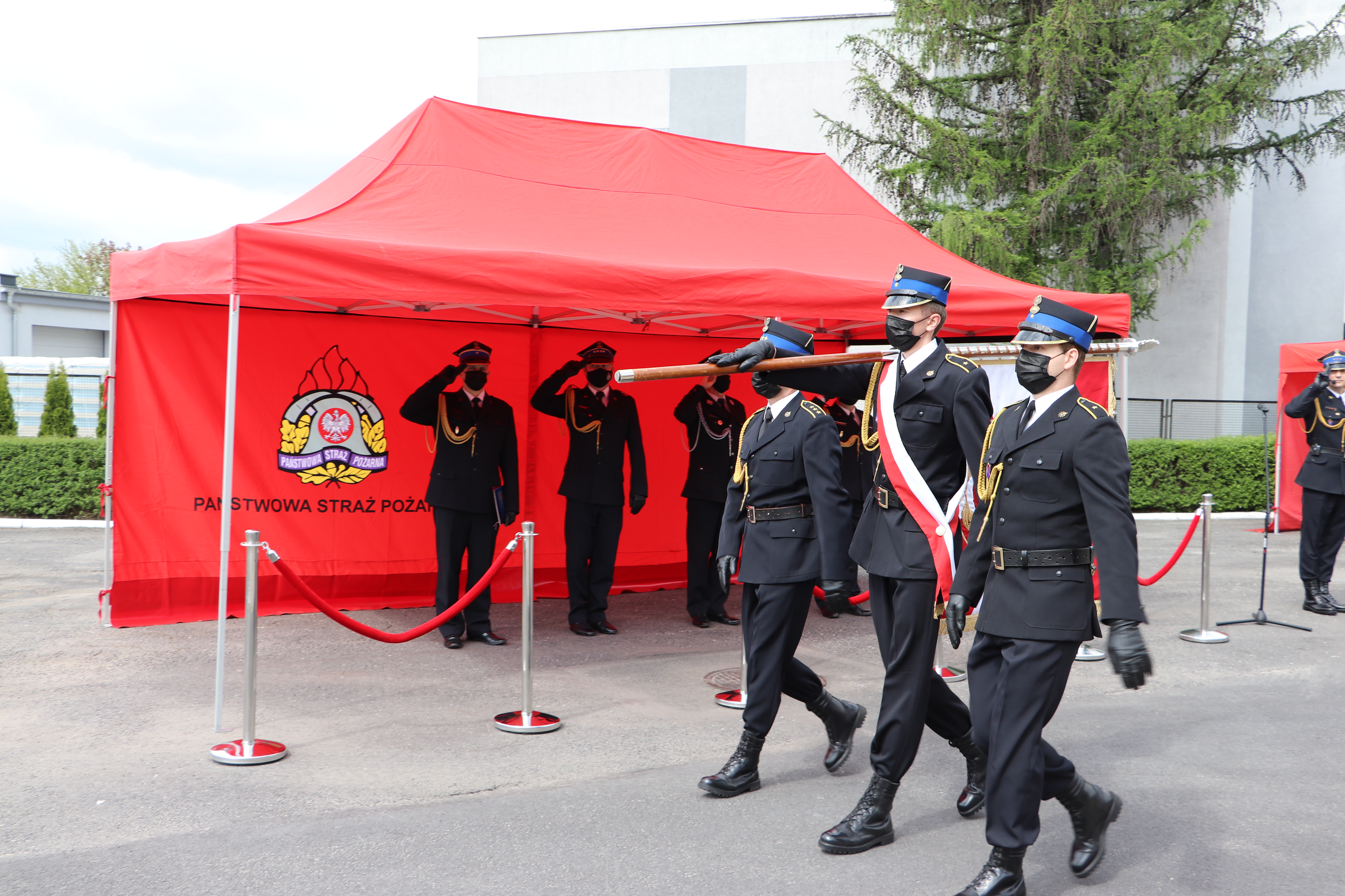 Uroczysty apel rozpoczął się od złożenia meldunku przez dowódcę uroczystości kpt. Daniela Pawłowskiego przedstawicielowi Wielkopolskiego Komendanta Wojewódzkiego PSP st. kpt. Łukaszowi Ostrowskiemu.