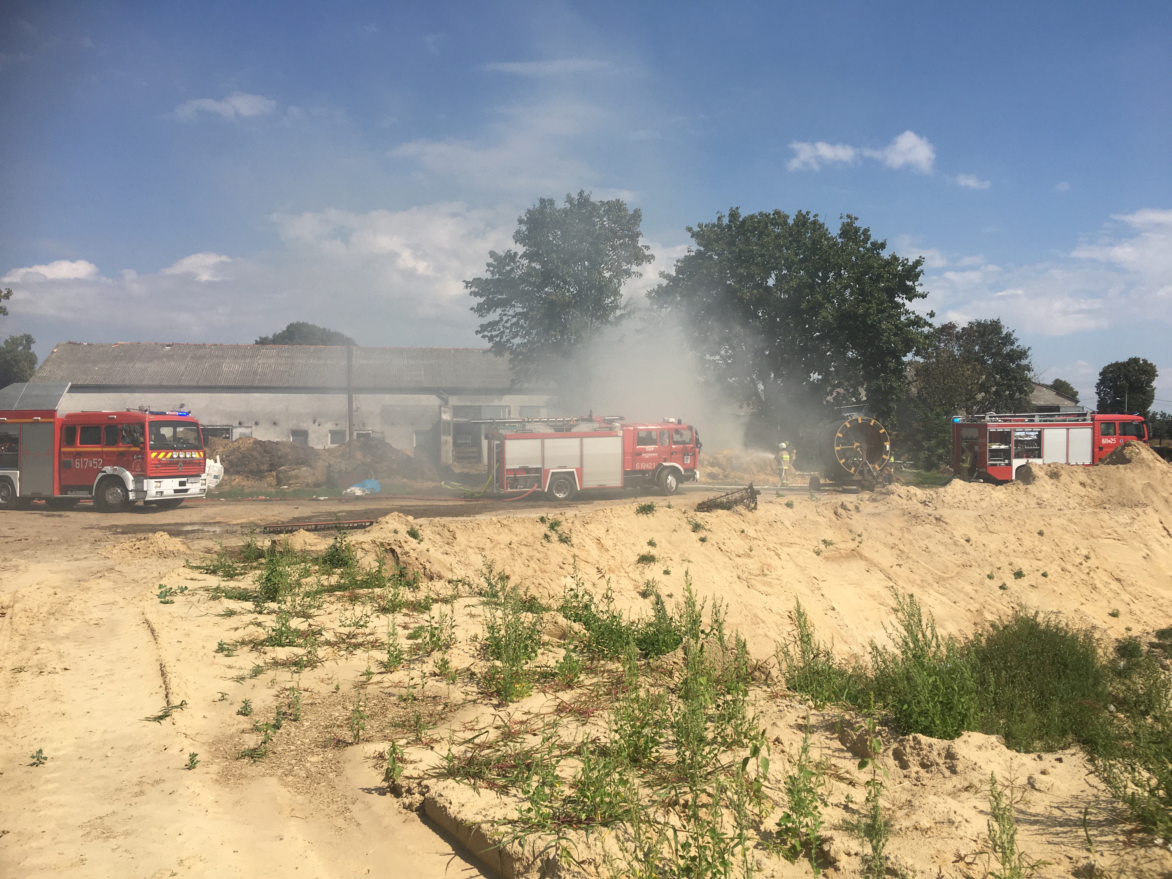 W piątek przed południem średzcy strażacy otrzymali informację o pożarze stogu słomy zlokalizowanym na polu w miejscowości Szlachcin Huby. Zapaleniu uległo tam około dwudziestu balotów słomy, zgromadzonych na polu przy jednym z gospodarstw rolnych. Na miejsce natychmiast skierowano dwa zastępy z JRG Środa Wlkp. i cztery zastępy OSP z powiatu średzkiego. Dzięki szybkiemu zauważeniu pożaru i natychmiastowemu podjęciu działań ogień nie zdołał przenieść się na rosnące nieopodal drzewa i zabudowania gospodarskie, dzięki czemu obyło się bez dodatkowych strat. Akcja gaśnicza trwała półtorej godziny.