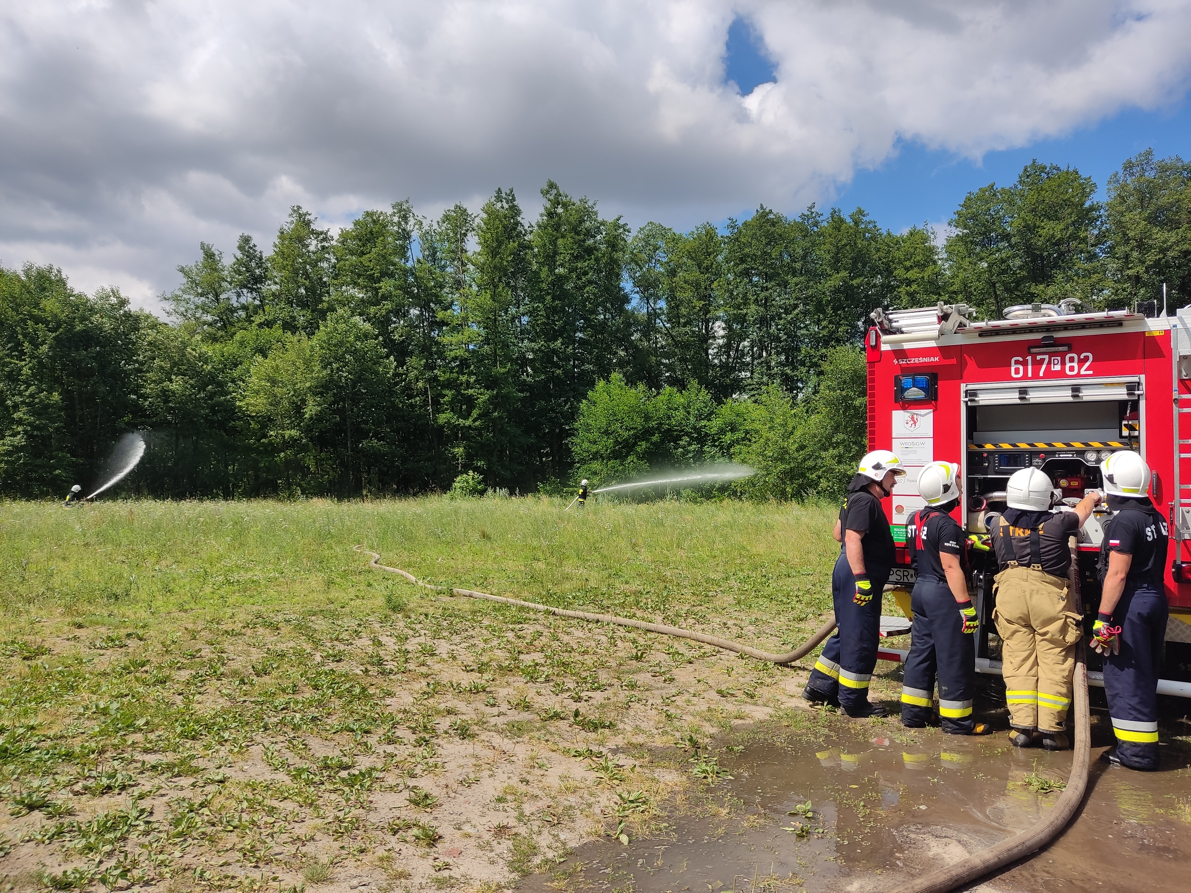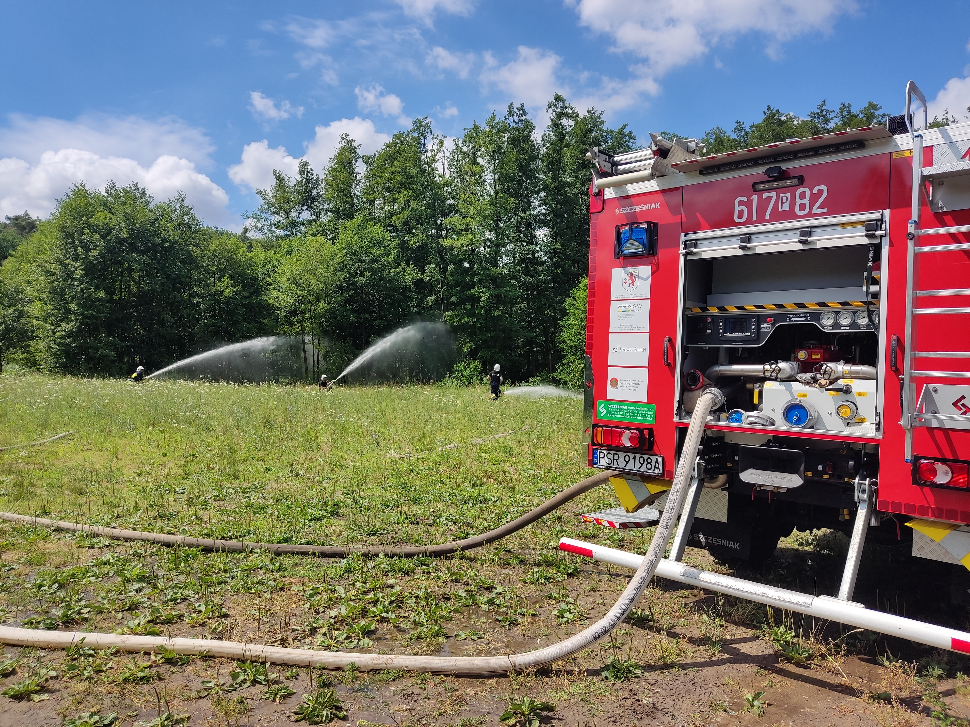 W związku z zwiększonym zagrożeniem pożarowym Komenda Powiatowa Państwowej Straży Pożarnej zorganizowała na terenie Leśnictwa Łękno ćwiczenia dla jednostek Ochotniczych Straży Pożarnych z terenu powiatu średzkiego, których głównym założeniem było prowadzenie działań gaśniczych w lasach. Do zadań strażaków podczas ćwiczeń należało między innymi: