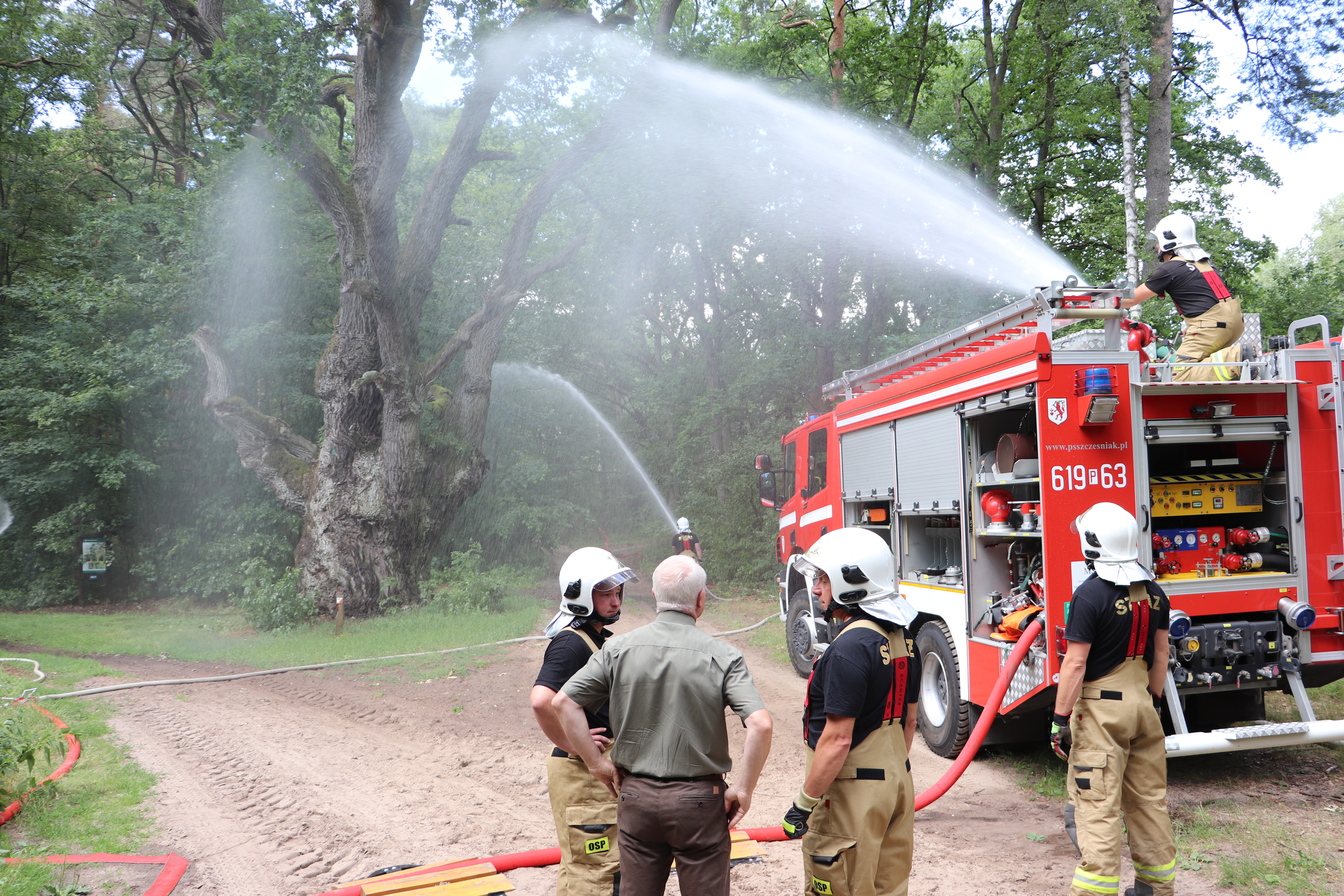 W ćwiczeniach uczestniczyli Komendant Powiatowy PSP w Środzie Wlkp. bryg. Tomasz Skorlinski oraz Leśniczy Leśnictwa Łękno Pan Zbigniew Łyszczarz.