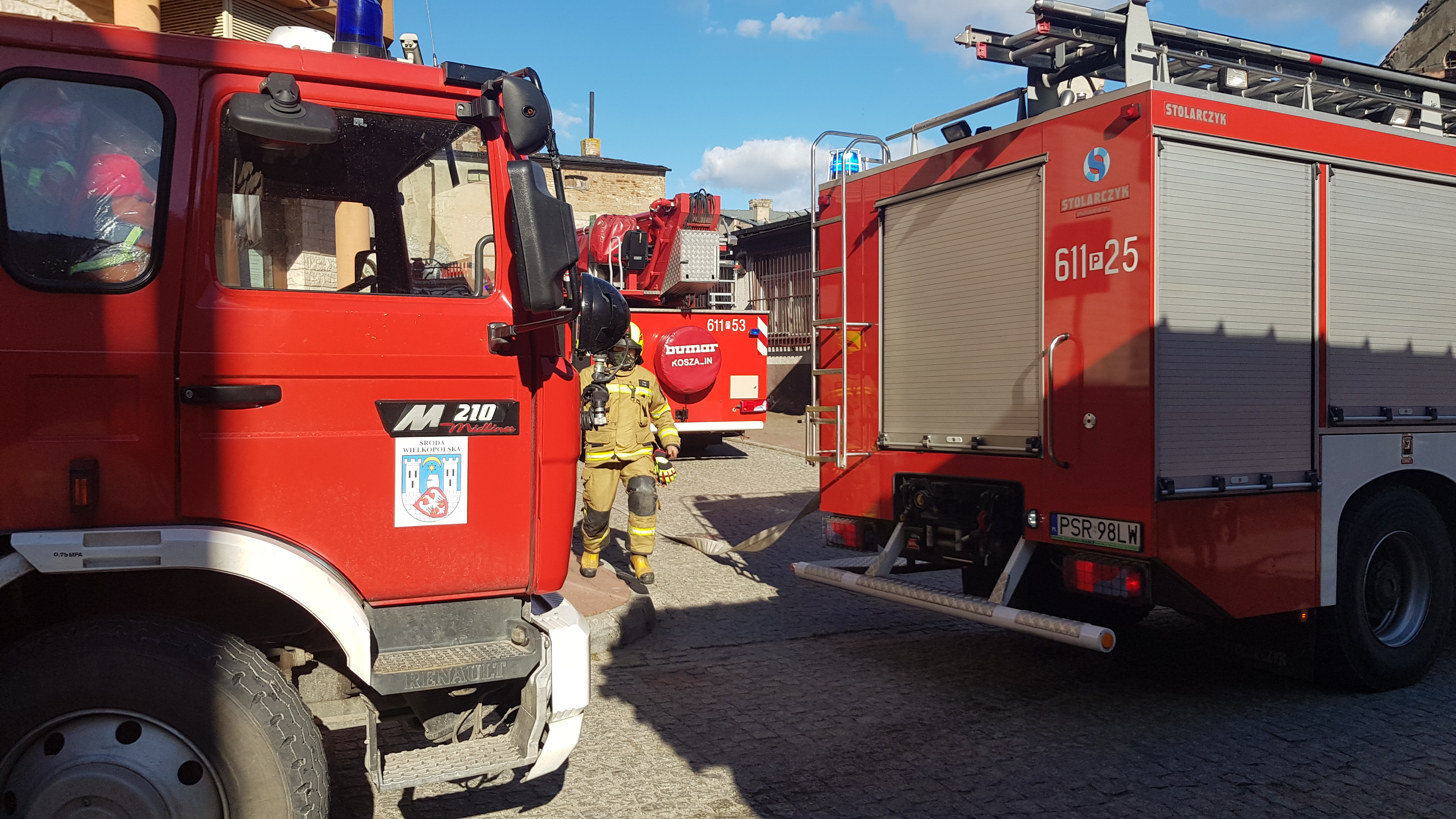 Do zdarzenia natychmiast zadysponowano strażaków z Jednostki Ratowniczo – Gaśniczej oraz druhów Ochotniczej Straży Pożarnej z Brodowa i Koszut. Po dojeździe na miejsce zdarzenia strażacy zauważyli w oknie na trzecim piętrze budynku mężczyznę wzywającego pomocy. Z mieszkania wydobywał się gęsty dym. Strażacy natychmiast udali się na górę gdzie po wyważeniu drzwi i ugaszeniu pożaru wyprowadzili poszkodowanego na zewnątrz gdzie przekazali go Zespołowi Ratownictwa Medycznego. Mężczyznę z objawami zatrucia dymem przewieziono do szpitala.