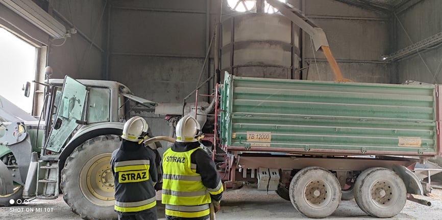 Po dojeździe na miejsce zdarzenia pierwszych zastępów straży pożarnej stwierdzono, że w wyniku awarii zapaliło się urządzenie do suszenia zboża.
