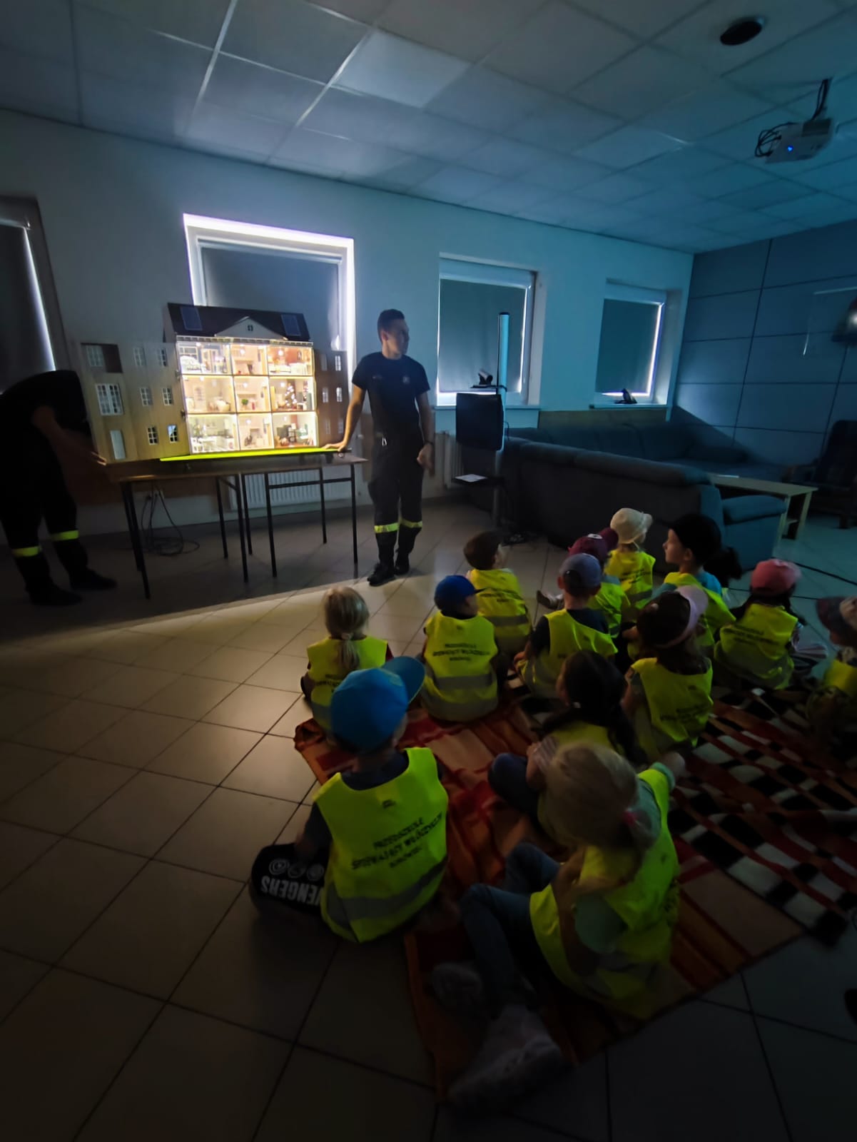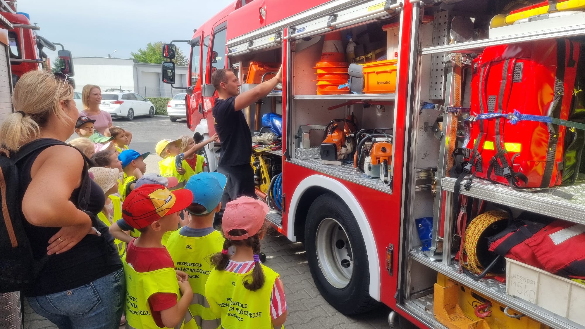 Włóczykije podczas wizyty zapoznały się ze specyfiką strażackiej służby oraz sprzętem będącym na wyposażeniu samochodów pożarniczych. Miały także okazję zobaczyć Mobilny Symulator Zagrożeń Pożarowych, który daje możliwość prowadzenia szkoleń z zakresu prewencji pożarowej i ekologii, odzwierciedlając sytuacje mogące zaistnieć w domu. Symulator jest modelem budynku mieszkalnego, w którym zagrożenia symulowane są w sposób obrazowy za pomocą efektów dźwiękowych i świetlnych. Przedszkolaki poznały również specjalistyczne ubrania jakich strażacy używają podczas różnego rodzaju akcji, między innymi: ubrania żaroochronne, ubrania chemiczne, ubrania do usuwania owadów oraz ubrania do pracy w wodzie.