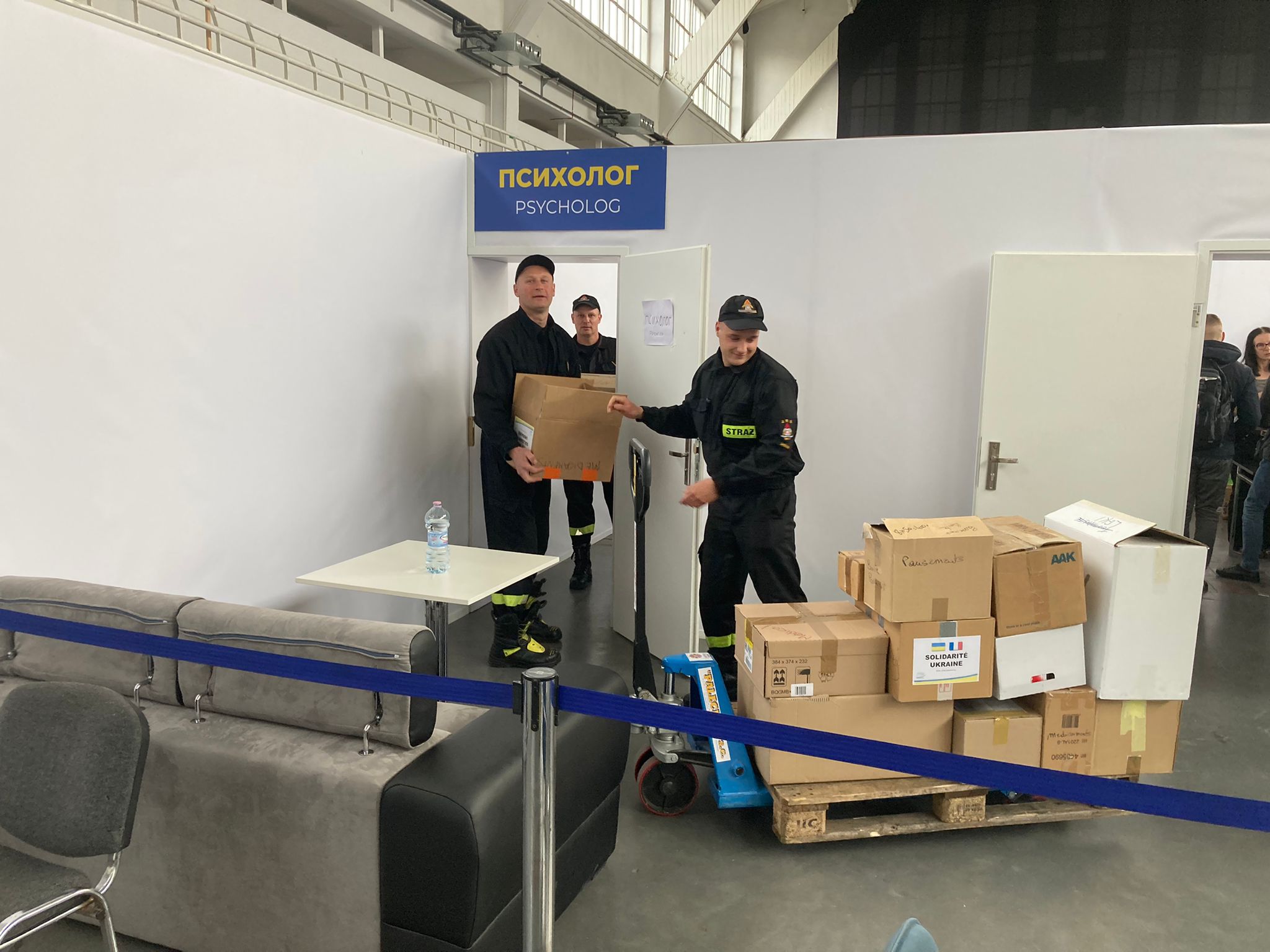 Kolejna zmiana strażaków pełniła służbę na terenie miasta Poznania pomagając w organizacji i koordynacji różnego rodzaju działań mających na celu pomoc uchodźcom z Ukrainy.