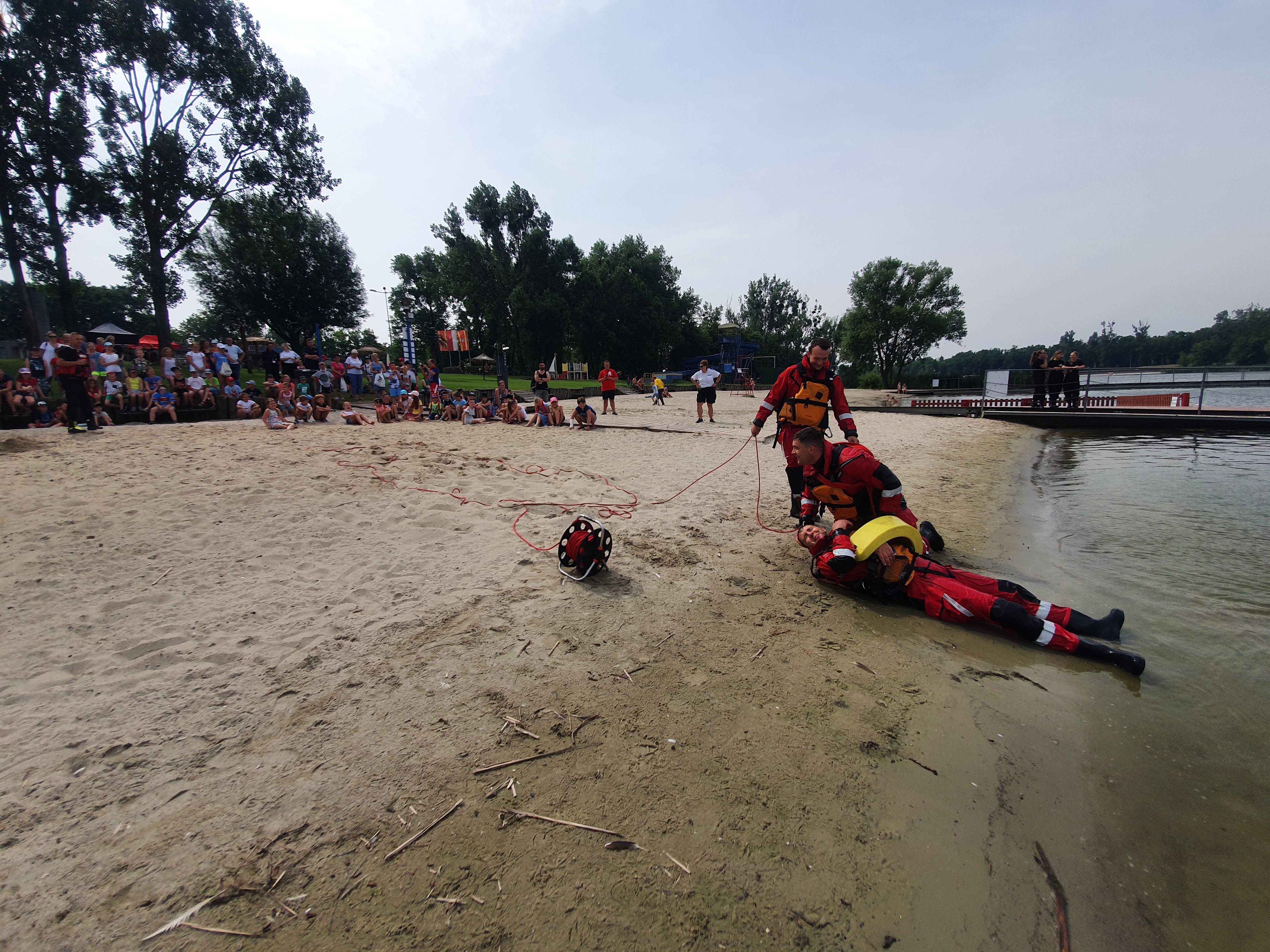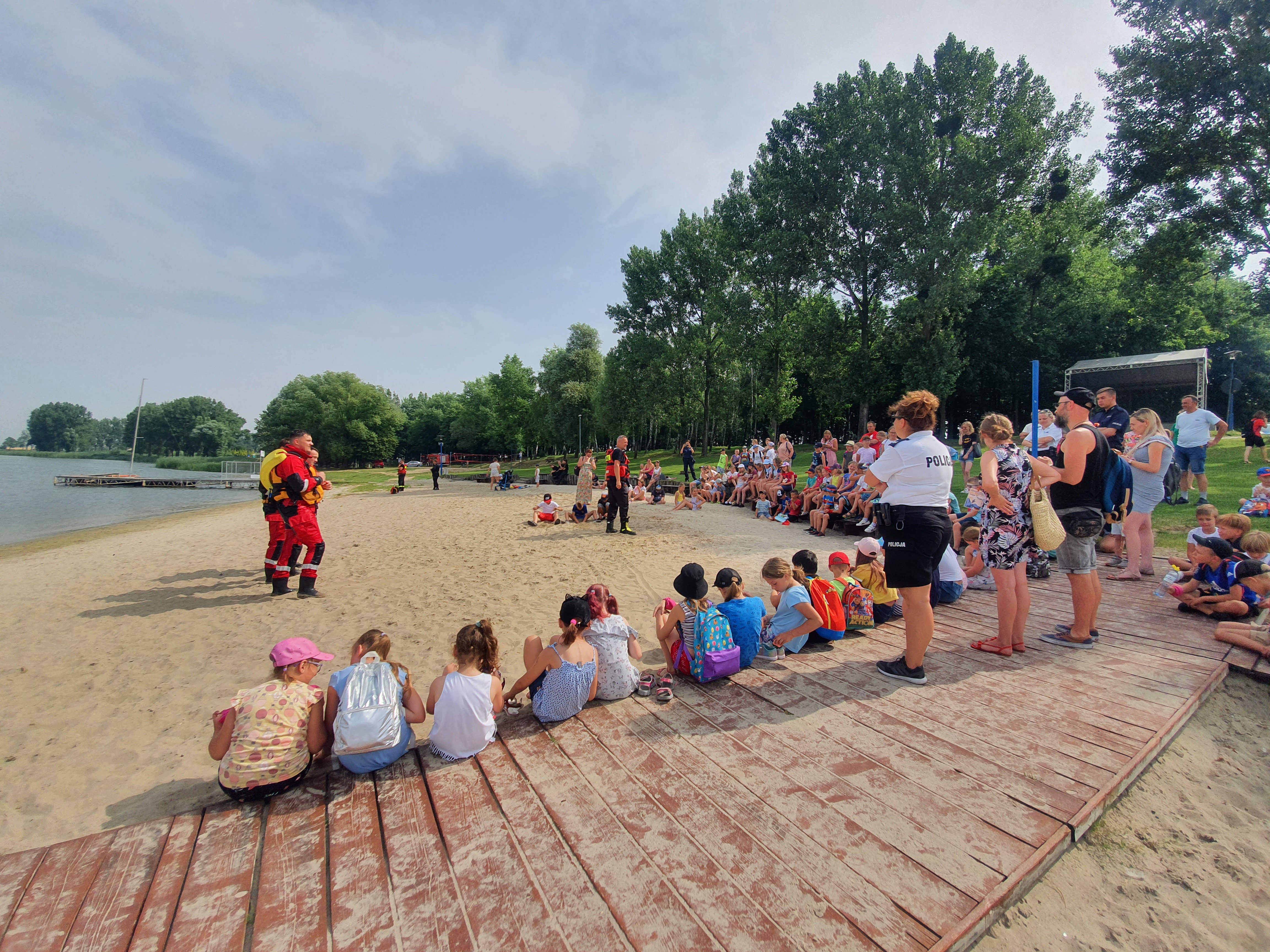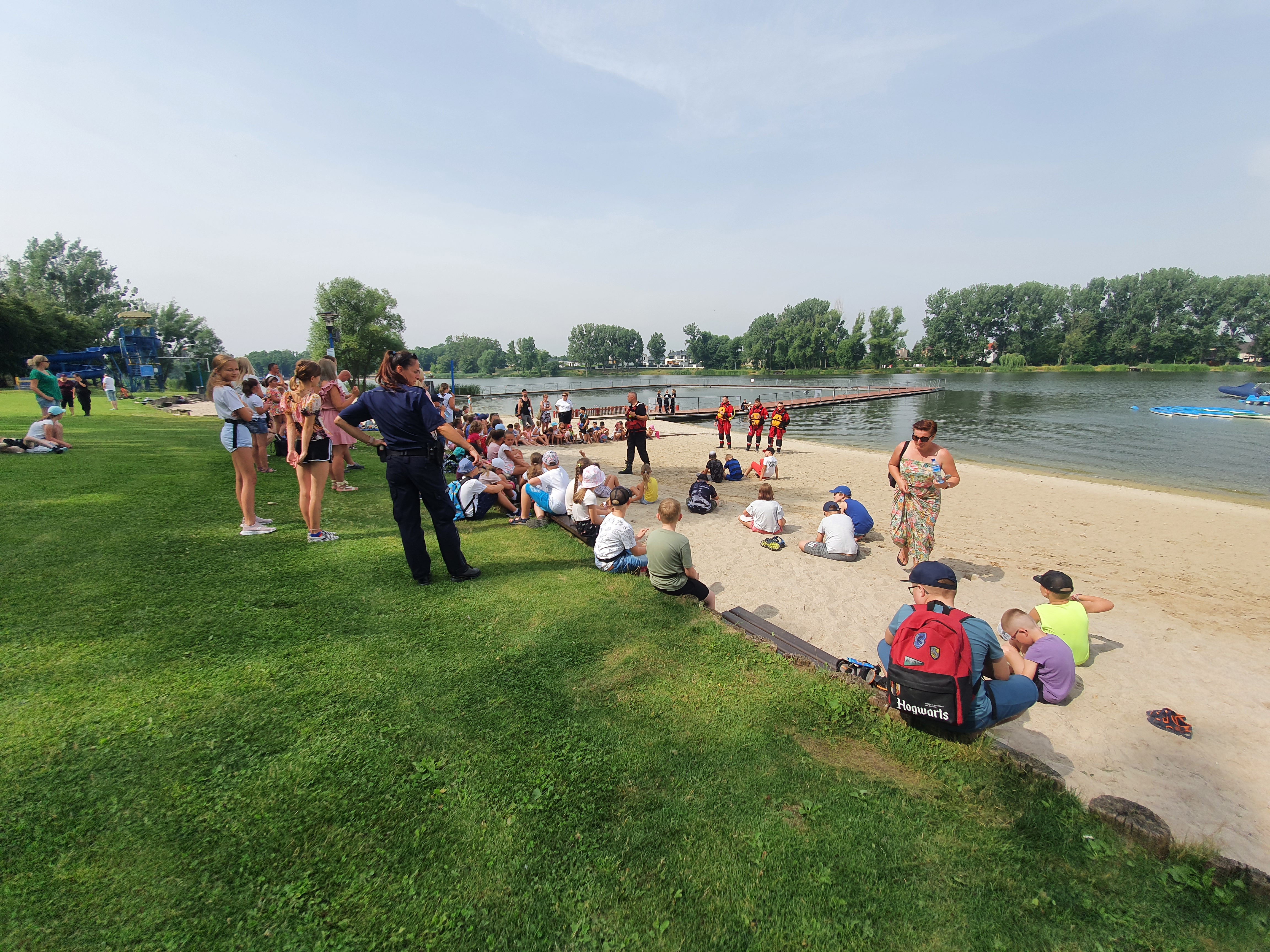 Podczas pikniku strażacy omówili jakimi zasadami należy kierować się podczas wypoczynku nad wodą oraz jak zachowywać się podczas wakacji aby były bezpieczne!. Dzieci z wielkim zainteresowaniem obserwowały pokaz umiejętności strażackich podczas ratowania osoby tonącej oraz sprzęt i wyposażenie wozów strażackich.