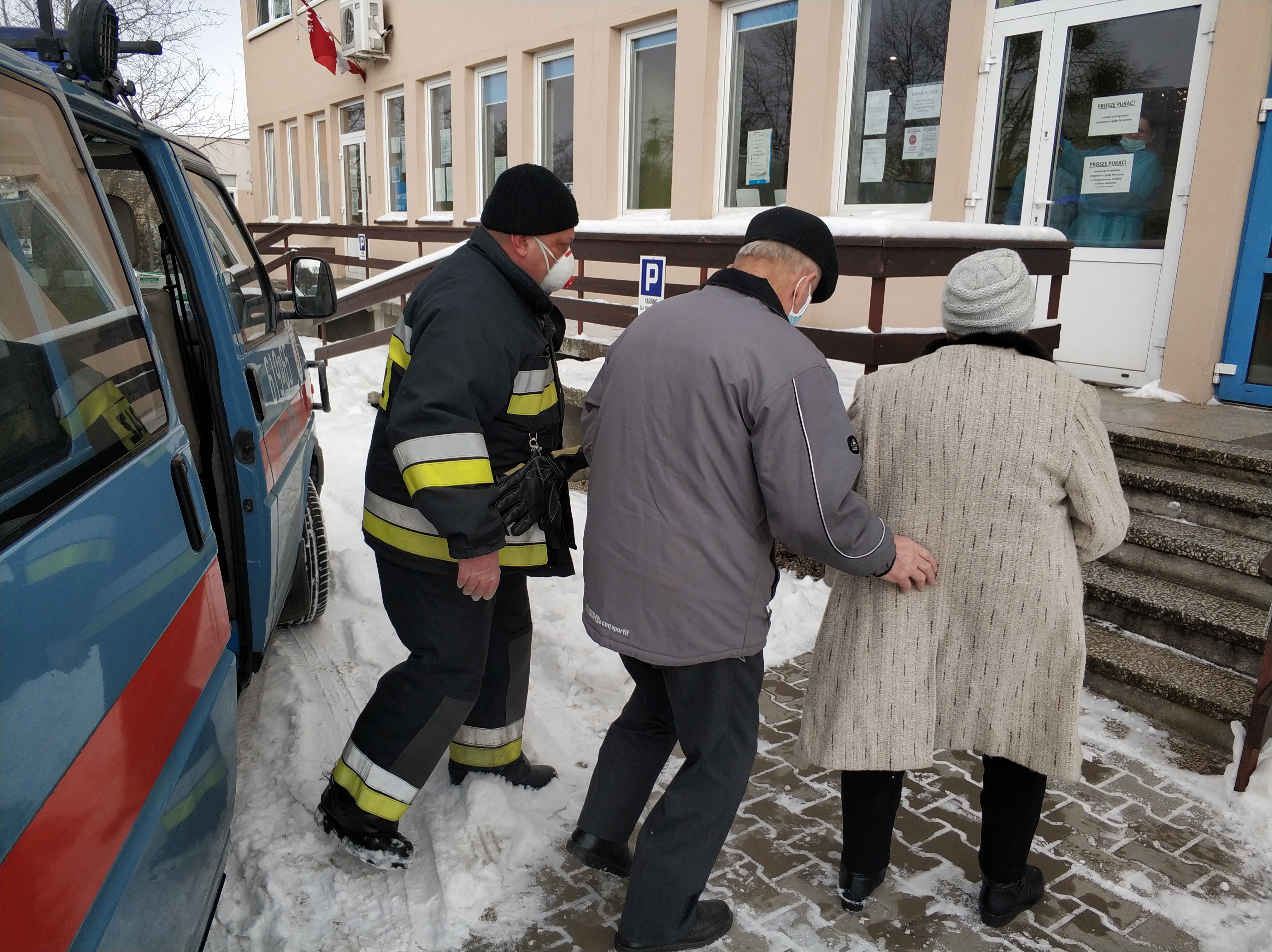 W ramach Narodowego Programu Szczepień Przeciw COVID-19 strażacy pomagają w dotarciu do punktów szczepień osobom starszym, niemającym możliwości samodzielnego dojazdu. Akcja jest prowadzona we współpracy z punktami szczepień oraz jednostkami samorządu terytorialnego.