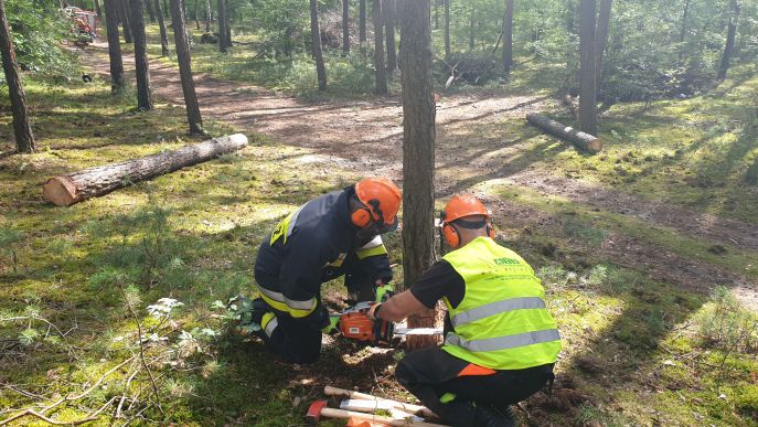 Dzięki uprzejmości Lasów Państwowych ćwiczenia zostały przeprowadzone na terenie leśnictwa Brzozowiec (dawniej Małoszki) należącego do Nadleśnictwa Jarocin. Do udziału w ćwiczeniach zaproszono wykładowców ze Szkoły Aspirantów Państwowej Straży Pożarnej w Poznaniu, którzy omówili zasady bezpieczeństwa podczas obsługi pilarek a następnie przedstawili techniki obalania drzew i cięcia ich pod naprężeniem. Wykorzystali do tego symulator naprężeń, który pozwala na wywołanie naprężeń w sposób kontrolowany i bezpieczny dla osób szkolących się.