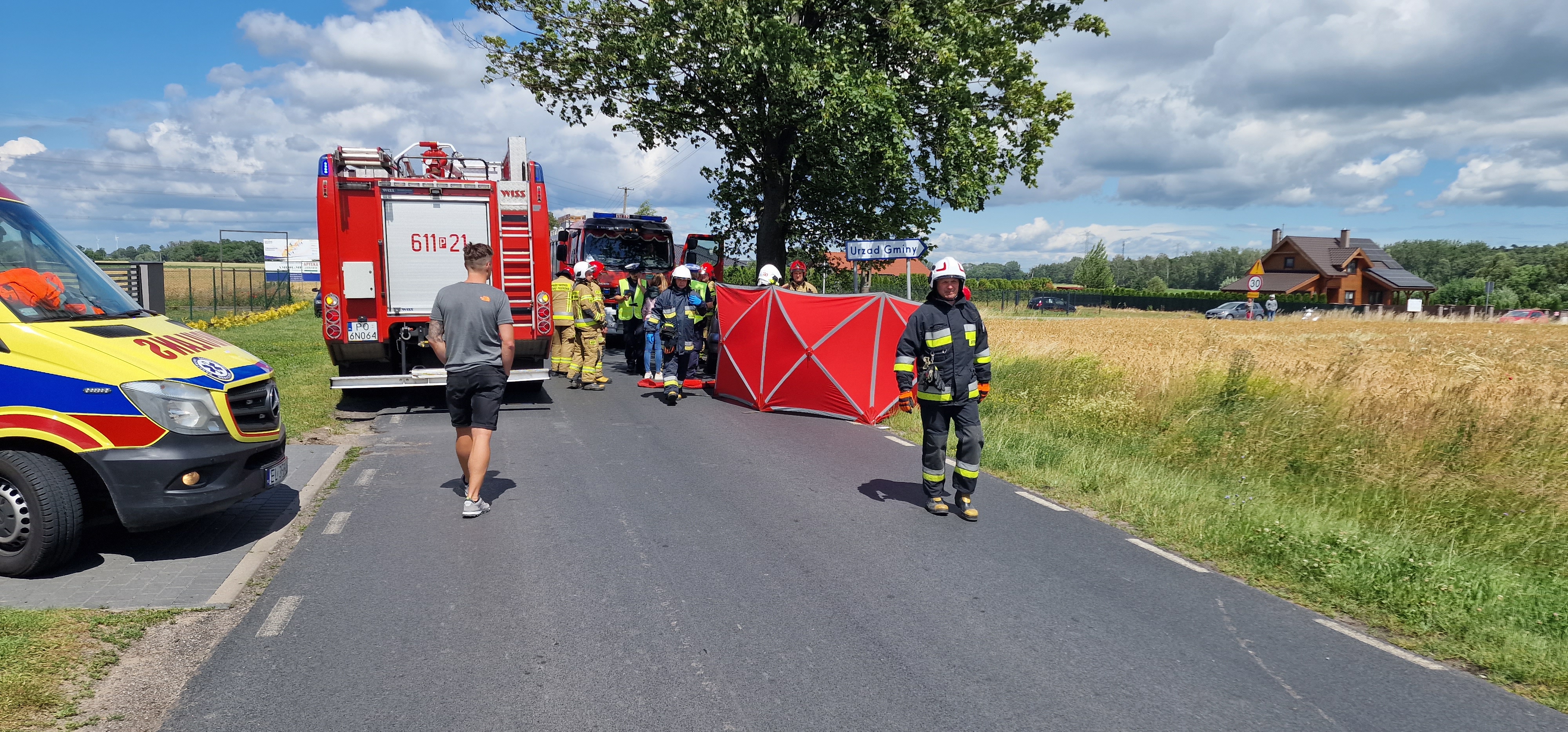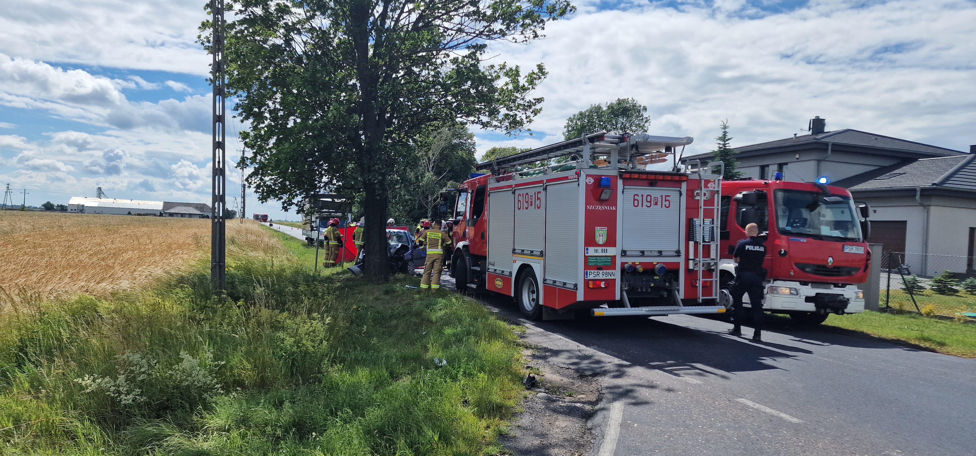 Kierujący samochodem osobowym, z niewyjaśnionych przyczyn stracił panowanie nad pojazdem, zjechał z drogi i uderzył w drzewo. Do działań natychmiast zostały zadysponowane trzy zastępy strażaków z Jednostki Ratowniczo – Gaśniczej w Środzie Wlkp. oraz jednostki OSP Dominowo i OSP Mączniki. Strażacy po przybyciu na miejsce zdarzenia przystąpili do udzielania kwalifikowanej pierwszej pomocy, wykonując resuscytację krążeniowo - oddechową. Niestety przybyły na miejsce lekarz z Zespołu Ratownictwa Medycznego stwierdził zgon poszkodowanego. Dalsze działania polegały na zabezpieczeniu miejsca zdarzenia oraz neutralizacji płynów eksploatacyjnych wyciekających z rozbitego pojazdu. W wyniku zdarzenia ruch na drodze pomiędzy miejscowościami Dębicz - Chłapowo był wstrzymany przez kilka godzin. Czynności wyjaśniające okoliczności zdarzenia prowadzi Policja pod nadzorem prokuratora.