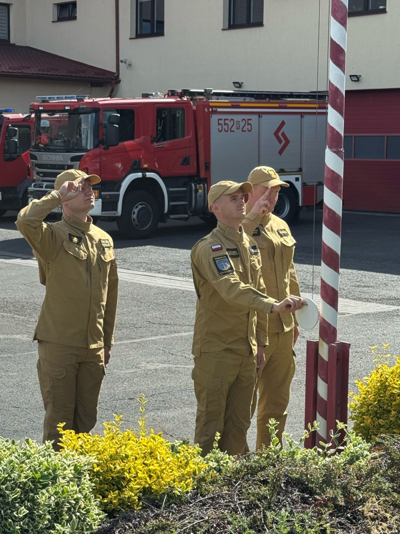 2 maja 2025 r. w komendzie powiatowej Państwowej Straży Pożarnej w Stalowej Woli podczas zmiany służbowej odbyło się uroczyste podniesienie biało-czerwonej flagi z okazji Dnia Flagi Państwowej Rzeczypospolitej Polskiej.
