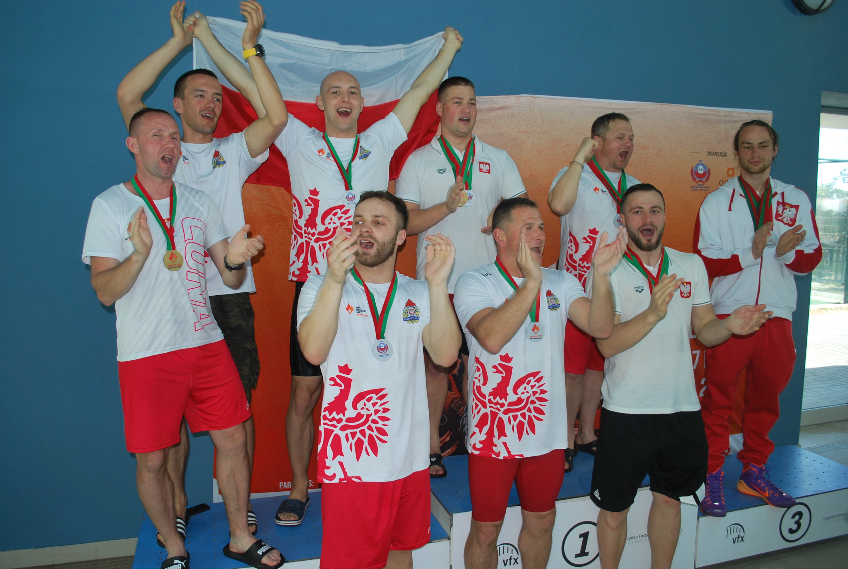 Po zakończonych konkurencjach biegowych, w malowniczym mieście Vila Franca de Xira oddalonego o ok. 30 km od Lizbony, na basenie olimpijskim o długości 50 metrów swoje umiejętności sprawdzali pływacy. Od początku uczestnicy zawodów musieli zmagać się z wysoką temperaturą wody sięgającą blisko 30°C i nie mniejszą temperaturą powietrza. W zawodach udział wzięło 109 zawodników z 23 państw. Poziom zawodów był bardzo wysoki. Krystian Bąk wraz z Grzegorzem Wójcickim, Mariuszem Wójcickim oraz z zaprzyjaźnionym strażakiem z Hiszpanii Jesusem Motero Suarezem w kategorii powyżej 160 lat w konkurencji sztafetowej 4x100 metrów stylem dowolnym z czasem 4 minut 48 sekund zajęli drugie miejsce inkasując w ten sposób srebrny medal Mistrzostw Świata Strażaków. Walka o podium rozegrała się również w konkurencji 4x100 metrów stylem zmiennym gdzie nasi pływacy stanęli na najniższym stopniu podium zawieszając na szyjach brązowe krążki.