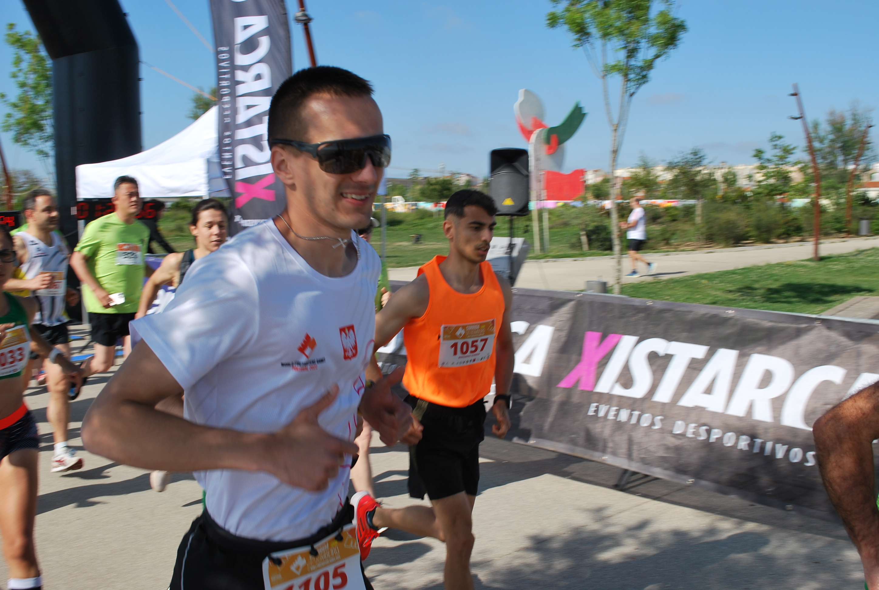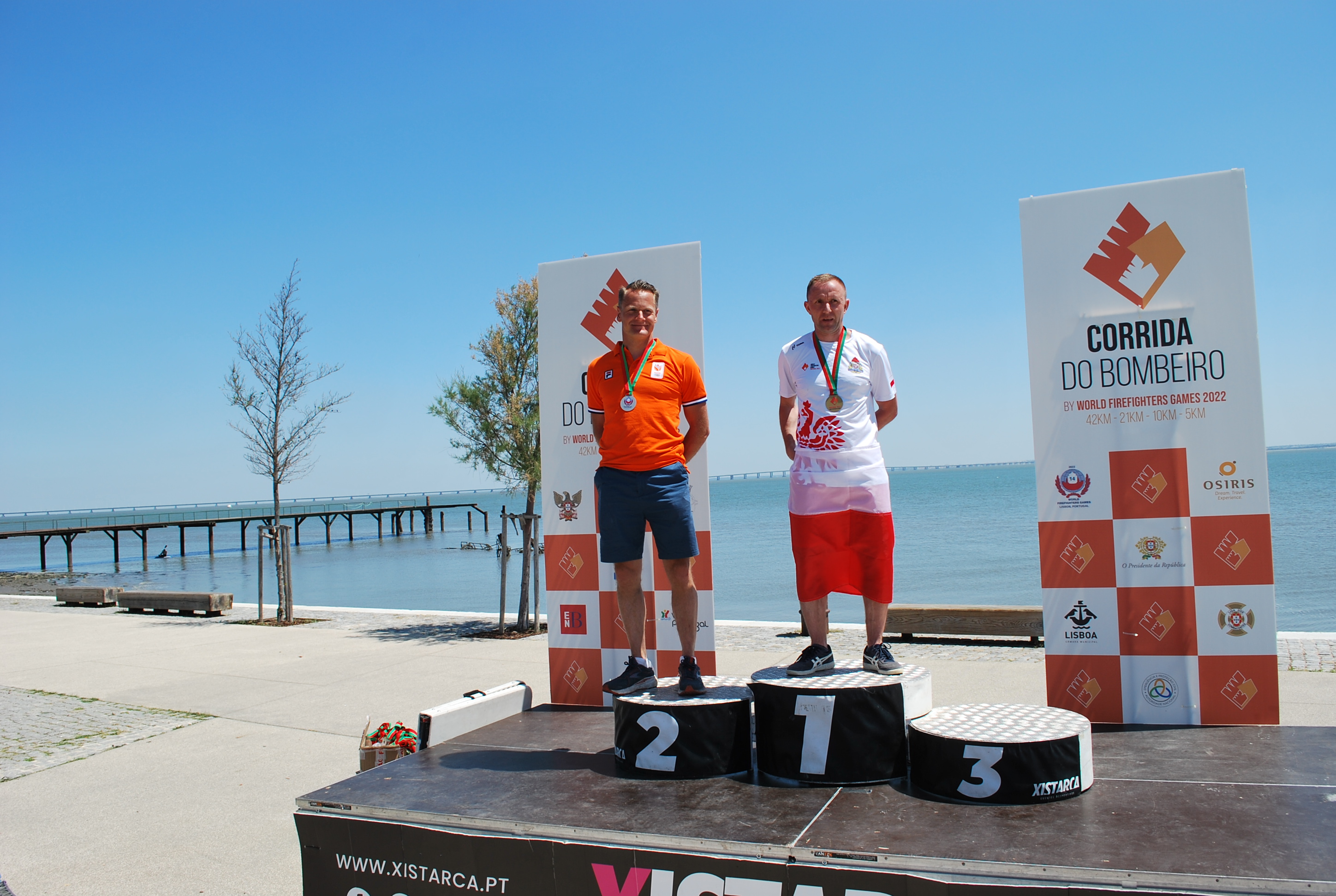 Rywalizację na igrzyskach rozpoczęli 1 maja biegacze. W niedalekiej odległości od Parku Parque Ribeirinho do Oriente, na asfaltowej trasie będącej 10 kilometrową pętlą, od godz. 9:45 swoją walkę z czasem na dystansie 21 km rozpoczął Marcin Korzonek, piętnaście minut później wystartował Tomasz Wyka, którego zadaniem było przebiegnięcie 10 km. Po 40 minutach Tomek wbiegł na metę co dało mu 5 miejsce w kategorii do 30 lat. Na Marcina trzeba było czekać troszkę dłużej ale to dlatego, że bieg na dystansie 21 km w pełnym słońcu przy mocnych podmuchach wiatru nie należy do najprzyjemniejszych. 1 godzina 32 minuty to czas w jakim Marcin ukończył półmaraton zostając tym samym MISTRZEM ŚWIATA STRAŻAKÓW w kategorii 45-50 lat.