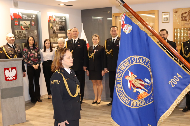 Podczas uroczystych zbiórek wyżej wymienieni funkcjonariusze mogli pożegnać się ze sztandarem komendy powiatowej PSP w Stalowej Woli, a komendant podziękował emerytowanym pracownikom za służbę i wkład wniesiony na rzecz tutejszej komendy.