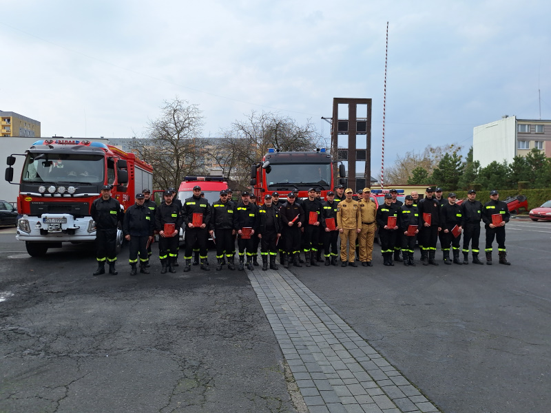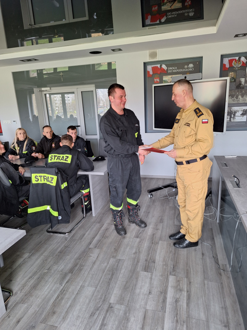 Zaświadczenia ukończenia szkolenia wręczył zastępca komendanta powiatowego PSP w Stalowej Woli st. bryg. Leszek Zieliński, który pogratulował uczestnikom zdanego egzaminu, jednocześnie życząc dalszych sukcesów w strażackiej służbie.