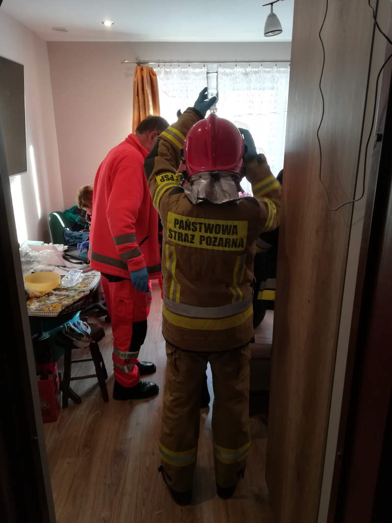 4 stycznia br. kilka minut przed godzina 11:00 do dyżurnego operacyjnego powiatu stalowowolskiego wpłynęła informacja o wybuchu gazu w budynku jednorodzinnym w miejscowości Dzierdziówka. Do zdarzenia zadysponowano 4 samochody ratowniczo-gaśnicze (2 zastępy PSP i 2 zastępy OSP) i samochód dowodzenia. Po dojeźdznie na miejsce zdarzenia okazało się, że prawdopodobnie w wyniku nieprawidłowego montażu nowego kartusza do palnika przenośnego doszło do wycieku gazu. Podczas próby odpalenia palnika nastąpiło szybkie niekontrolowane spalanie gazu w wyniku którego jedna osoba doznała poparzeń twarzy, szyi oraz obu kończyn górnych. Działania strażaków polegały na udzieleniu pierwszej pomocy osobie poparzonej a nastepnie przekazano ją zespołowi ratownictwa medycznego. Lekarz obecny na miejscu zdarzenia, biorąc pod uwagę charakter odniesionych obrażeń wezwał Lotnicze Pogotowie Ratunkowe, które zabrało poszkodowaną do szpitala specjalistycznego.