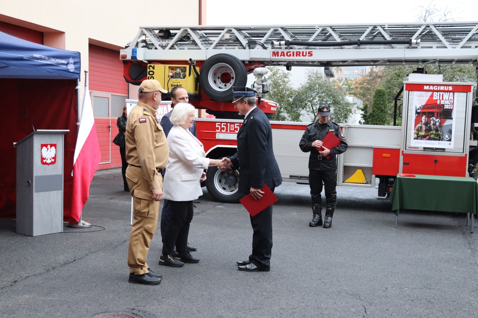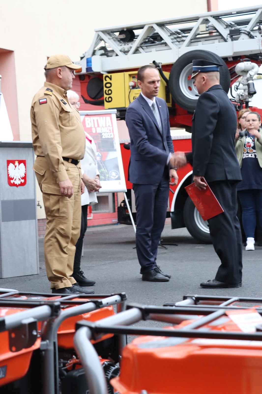 W uroczystej zbiórce udział wzięli między innymi: Poseł na Sejm Rafał Weber, Senator RP Janina Sagatowska, podkarpacki komendant wojewódzki PSP nadbryg. Andrzej Babiec, komendant powiatowy PSP w Stalowej Woli bryg. Szcepan Kozioł, komendant powiatowy PSP w Nisku bryg. Andrzej Kołodziej oraz przedstawiciele jednostek OSP, którym przyznano nowe urządzenia.