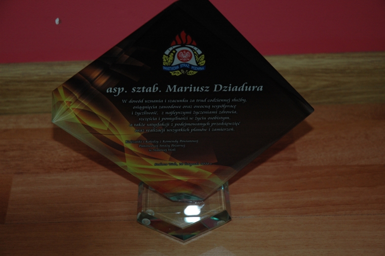 18 listopada 2020 roku w Jednostce Ratowniczo-Gaśniczej Nr 2 w Stalowej Woli odbył się uroczysty apel z okazji przejścia na zaopatrzenie emerytalne asp. sztab. Mariusza Dziadury.