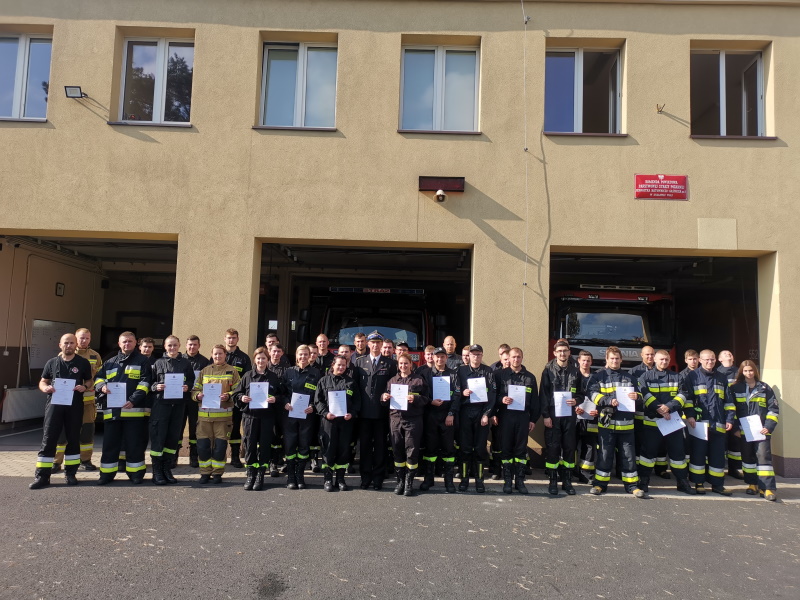 Zaświadczenia ukończenia szkolenia wręczył Zastępca Komendanta Powiatowego PSP w Stalowej Woli st. bryg. Leszek Zieliński, który pogratulował uczestnikom zdanego egzaminu, jednocześnie życząc dalszych sukcesów w strażackiej służbie.