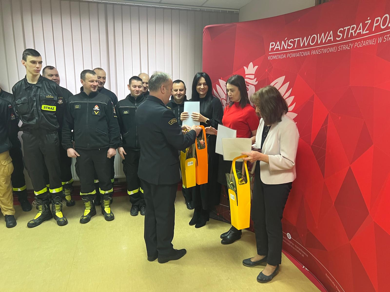 Na spotkaniu Komendant Powiatowy Państwowej Straży Pożarnej w Starachowicach mł. bryg. Sławomir Zięba wręczył pracownikom korpusu cywilnego listy gratulacyjne dziękując za codzienne zaangażowanie w wypełnianiu obowiązków oraz życzył spełnienia wszystkich marzeń i planów a przede wszystkim wiele radości na każdy dzień.