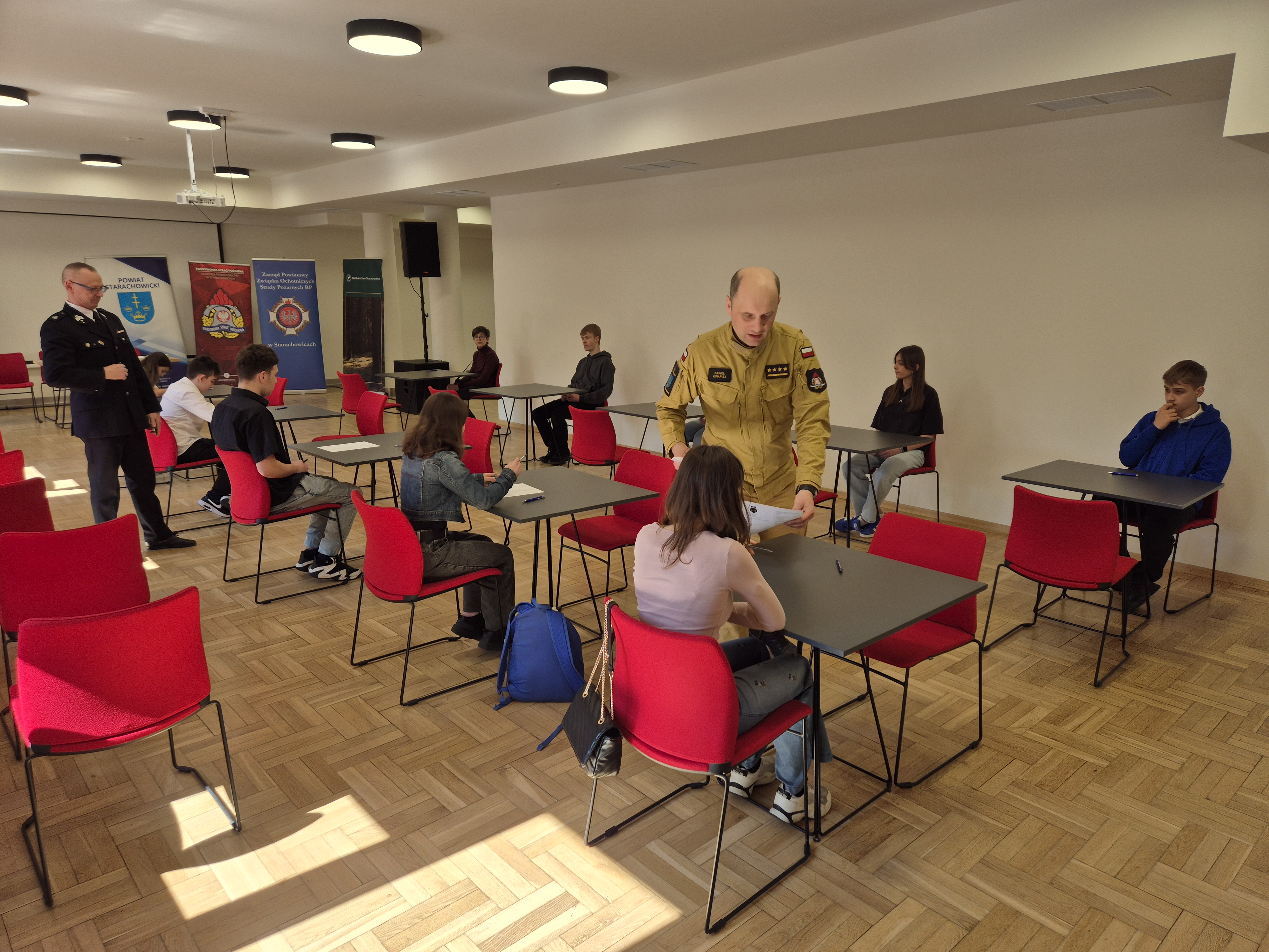 W dniu 17 kwietnia 2026 roku w budynku Parku Kultury w Starachowicach odbyły się eliminacje powiatowe Ogólnopolskiego Turnieju Wiedzy Pożarniczej ,,Młodzież Zapobiega Pożarom". Celem turnieju jest popularyzacja zagadnień z zakresu ochrony ppoż. i bezpieczeństwa. Konkurs powiatowy przeprowadzono pod honorowym patronatem Starosty Starachowickiego - Pana Piotra Babickiego.