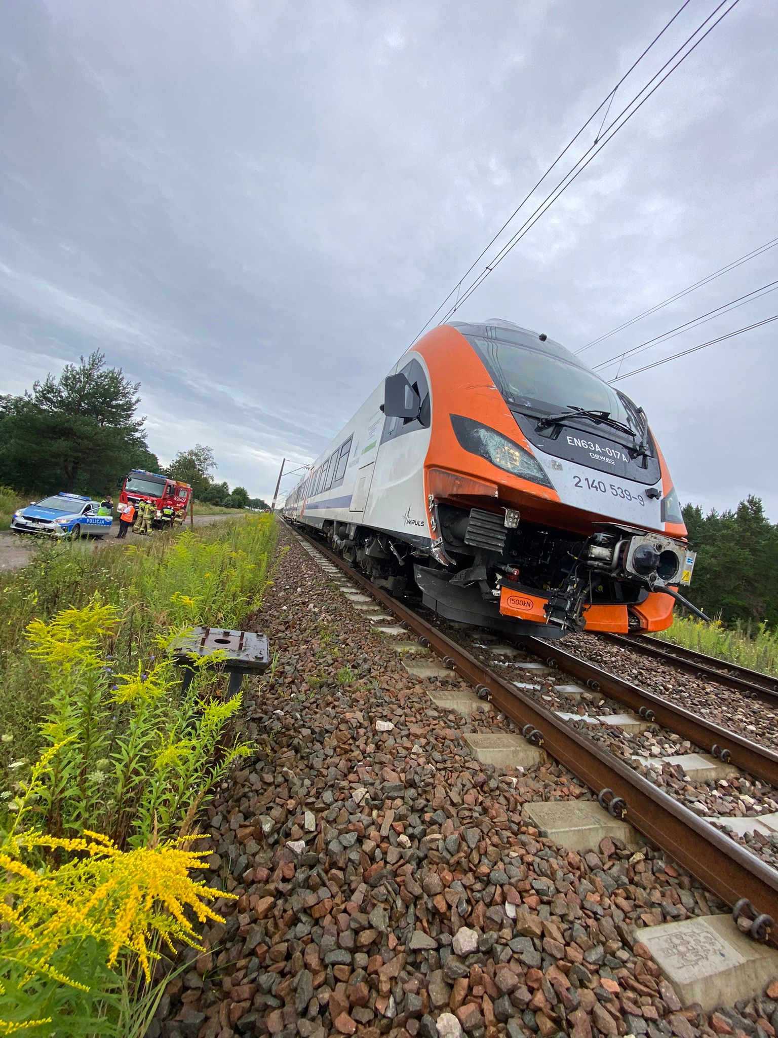 Po dojeździe na miejsce zdarzenia ustalono, że kierujący samochodem dostawczym Fiat Ducato wjechał na niestrzeżony przejazd kolejowy w chwili przejazdu pociągu osobowego relacji Kraków - Ostrowiec Świętokrzyski. W wyniku tego manewru pociąg uderzył w tył busa. W chwili przyjazdu jednostek ochrony pożarowej Fiat Ducato leżał na boku na poboczu poza obrysem jezdni i torowiska, natomiast pociąg znajdował się około 400 metrów od miejsca. Kierowca samochodu dostawczego wyszedł z pojazdu o własnych siłach. Obecny na miejscu zespół ratownictwa medycznego przebadał kierowcę pojazdu i nie stwierdził konieczności hospitalizacji. Dyżurny PKP podjął decyzję o wstrzymaniu ruchu pociągów na tym odcinku. Działania zastępów polegały na zabezpieczeniu miejsca zdarzenia oraz na odcięciu zasilania elektrycznego w samochodzie. Pociągiem podróżowało 104 pasażerów i 3 osoby z obsługi pociągu - nikt nie uskarżał się na żadne dolegliwości w związku ze zdarzeniem. Dalsze czynności wyjaśniające na miejscu zdarzenia prowadzi KP Policji w Starachowicach.