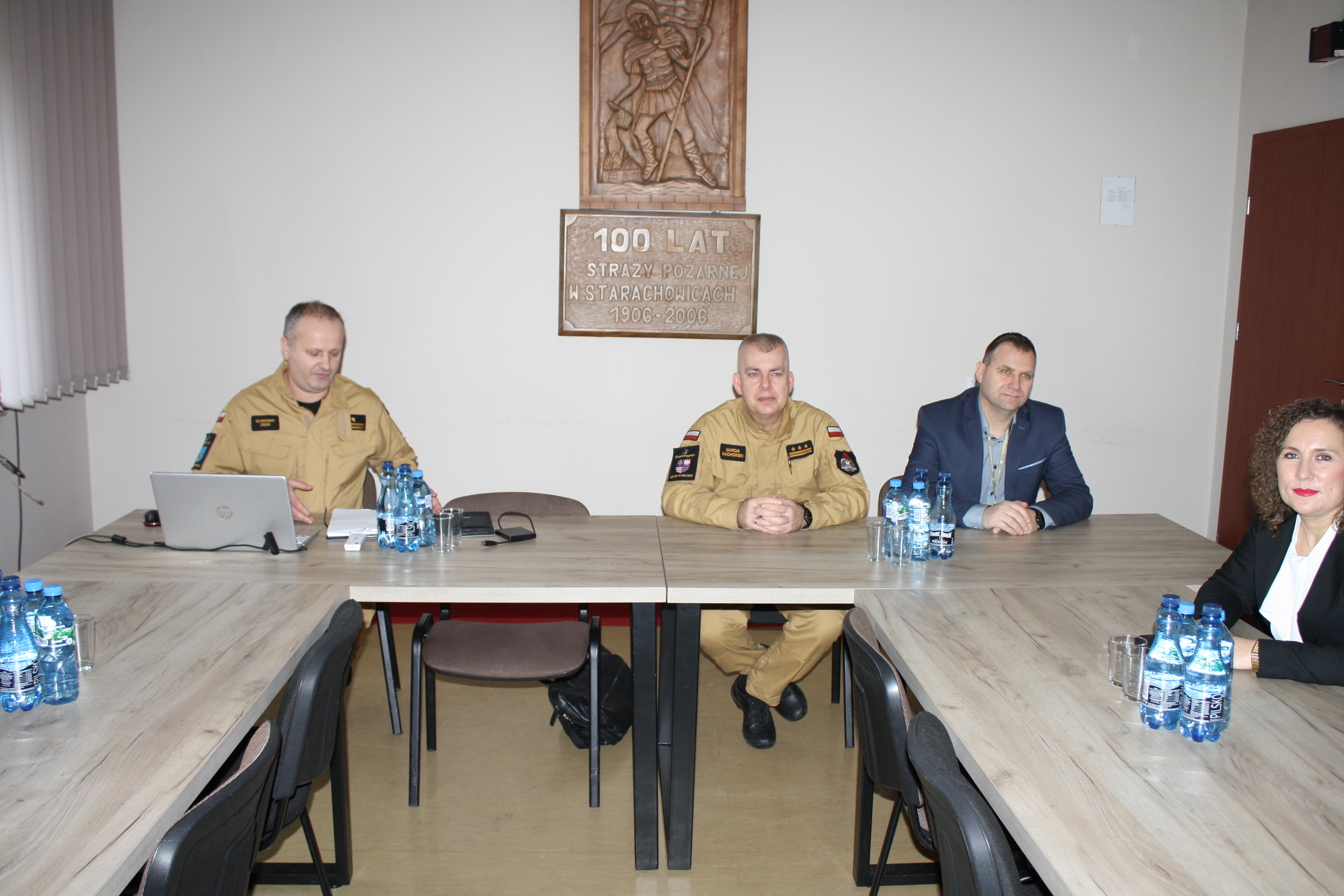 W spotkaniu udział wzięli: Starosta Starachowicki Piotr Ambroszczyk, Zastępca Prezydenta Miasta Starachowice Elżbieta Gralec, Wójt Gminy Mirzec Mirosław Seweryn, Wójt Gminy Pawłów Marek Wojtas, komendanci gminni ochotniczych straży pożarnych oraz przedstawiciele służb współdziałających. Podczas narady Komendant powiatowy Państwowej Straży Pożarnej w Starachowicach mł. bryg. Sławomir Zięba omówił szereg zagadnień z zakresu ochrony przeciwpożarowej.