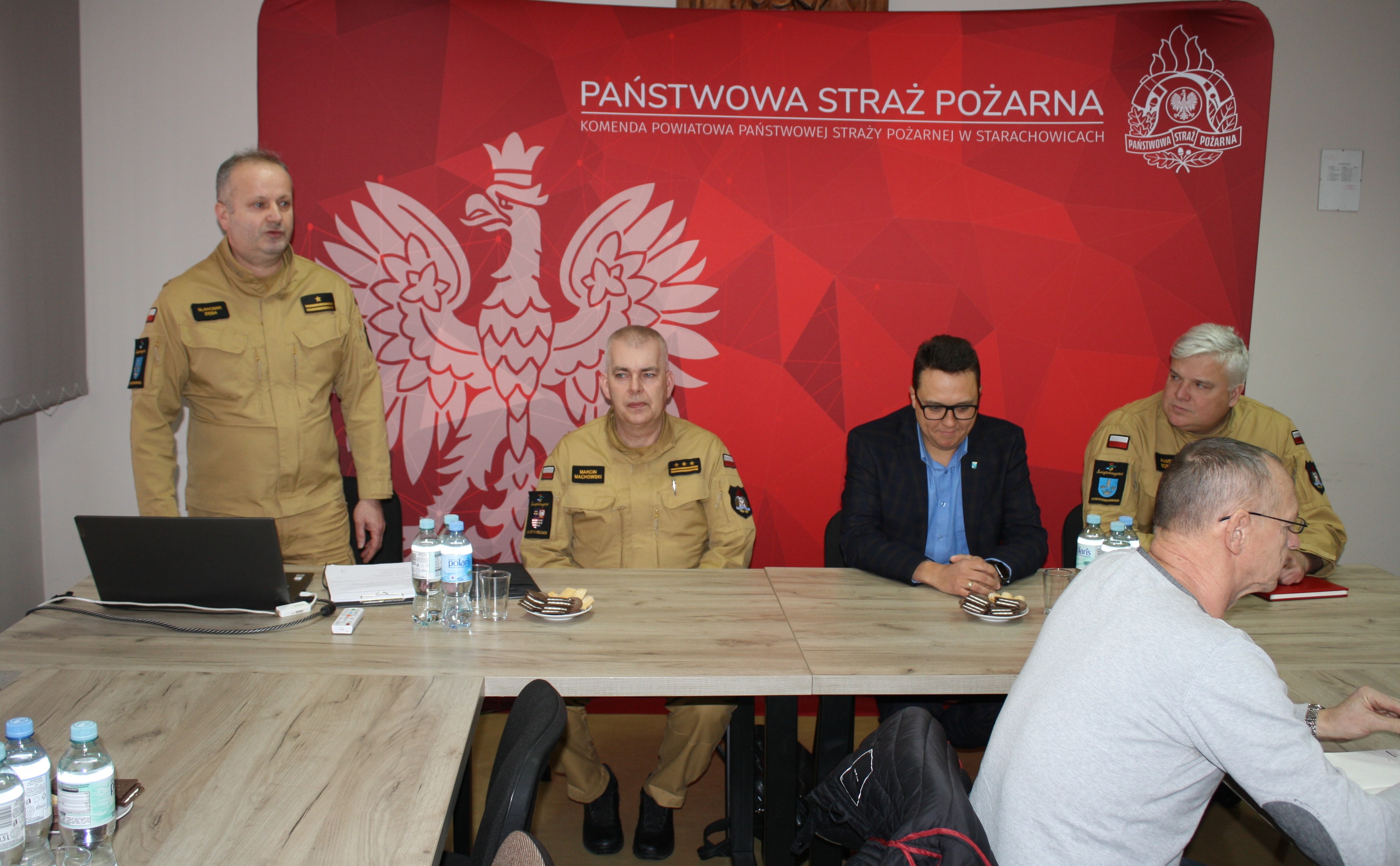 W spotkaniu udział wzięli: Starosta Starachowicki Piotr Babicki, Sekretarz Miasta Starachowice Maciej Myszka, Wójt Gminy Mirzec Mirosław Seweryn, Wójt Gminy Brody Ernest Kumek, komendanci gminni ochotniczych straży pożarnych, pracownicy gmin odpowiedzialni za sprawy p.poż oraz przedstawiciele służb współdziałających. Podczas narady Komendant powiatowy Państwowej Straży Pożarnej w Starachowicach mł. bryg. Sławomir Zięba omówił szereg zagadnień z zakresu ochrony przeciwpożarowej.